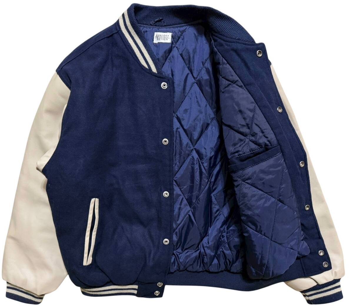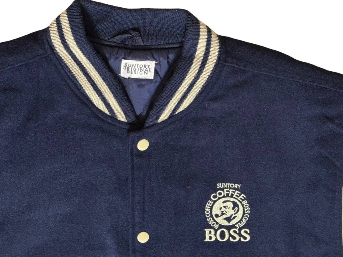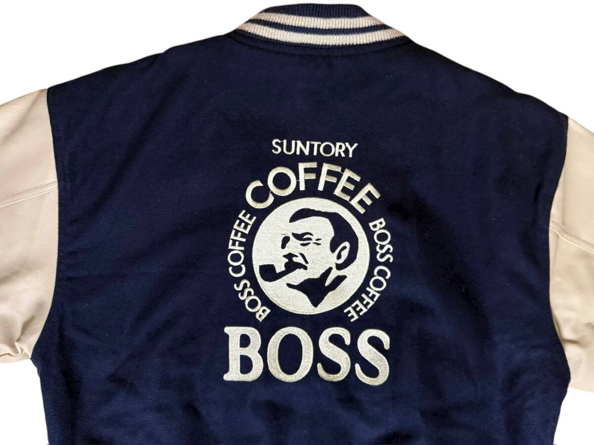 SUNTORY サントリー BOSS ボス 袖革 スタジャン スタジアムジャンパー L相当 ネイビー/アイボリー