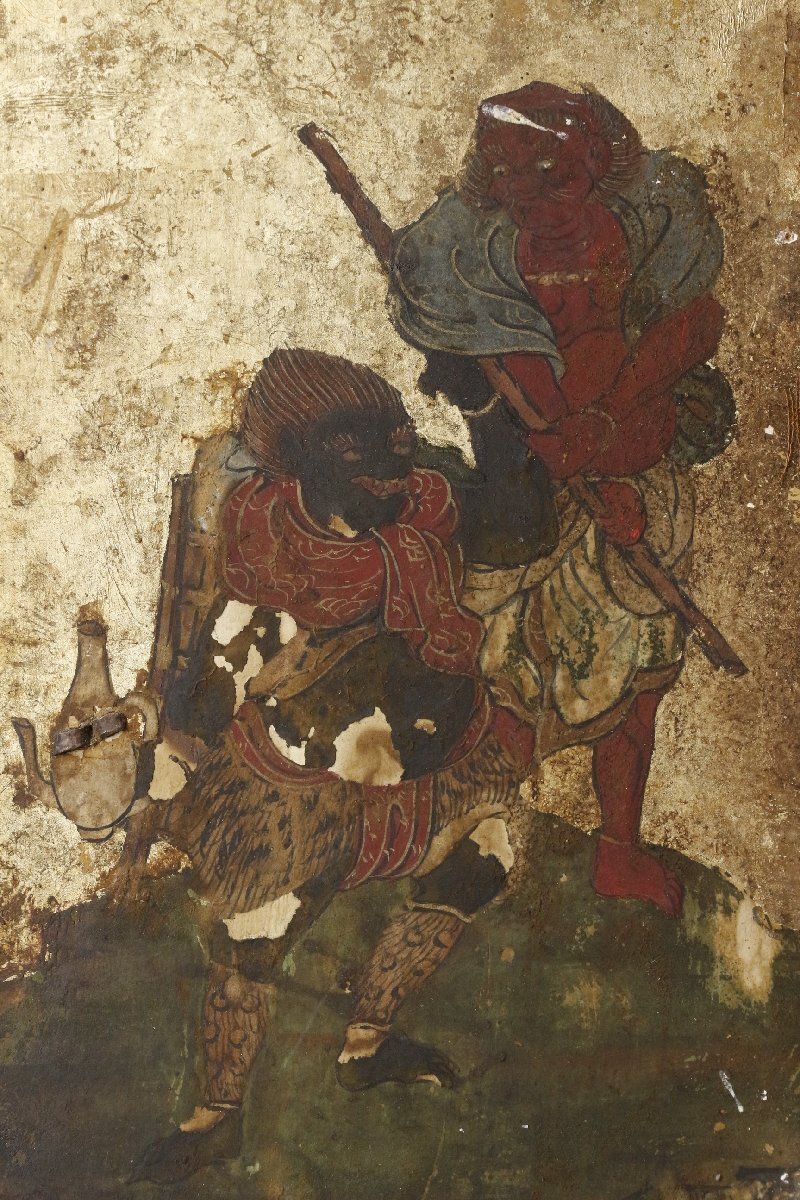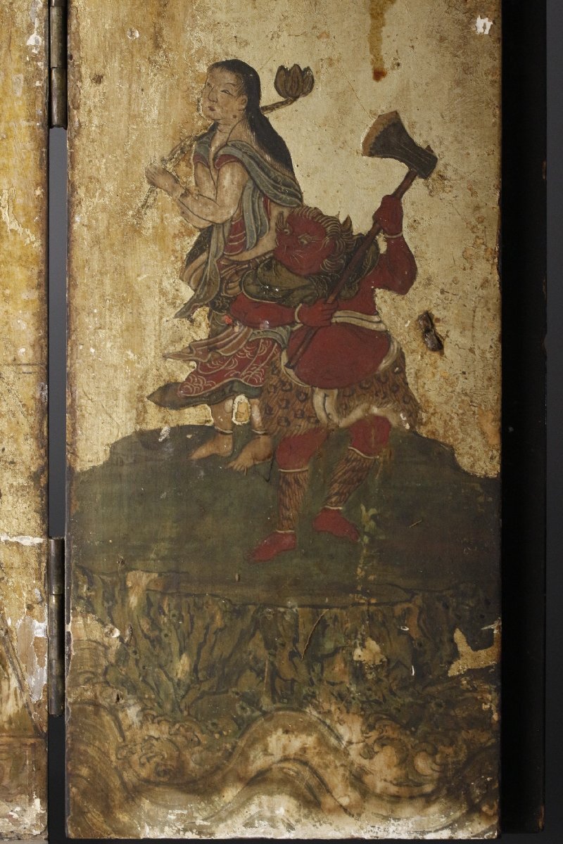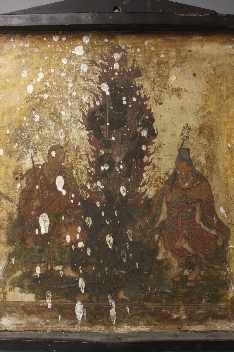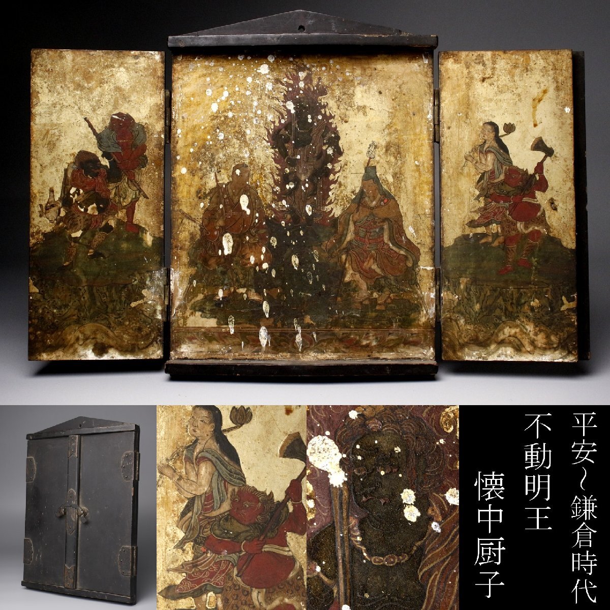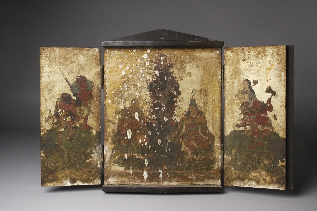 * * * 商品詳細 * * * ここでしか出逢うことのできない唯一の美をご紹介させて頂きます。 不動明王を中心に役行者、修験僧等が描かれた板仏です。 厨子のような形状をしており、中には繊細な筆遣いで厳かな仏画が描かれています。 鮮やかな色彩に眩い金色、長い時間経過を思わせながらもその輝きは失われていません。 立体的な彫像とは異なる細やかな表現が素晴らしく、その神秘的な姿には思わず目を奪われます。 現代に残る神聖で貴重な逸品をこの機会に是非お手元にてご堪能下さい。 ■サイズ/横19.5㎝×縦27㎝×奥行2.5㎝ 開いた全長41㎝ ■状態/経年による傷み、スレ、キズ、欠け、ヤケ、シミ、漆にヒビ、剥げ、 金具の留め具に一部欠損がございます。 ※写真にてご確認、ご了承の上ご入札下さい。 ![]() Yahoo!かんたん決済 * * * 発送詳細 * * * 入金確認後3営業日以内に発送致します。 ※直接引き取りも可能です。 60~160サイズにつきましては 佐川急便、ゆうパックのどちらかで発送いたします。 ゆうパック発送の場合、弊社の発送日から追跡サービスに問合せ番号が反映されるまで 約1日ほどお時間がかかりますのでご了承下さい。 佐川急便での発送の場合送料は下記のURLにてご確認下さい。 同梱を希望の場合は梱包サイズを測り直し 佐川急便の定価料金としますので ご了承ください。 * * * 注意事項 * * * 商品到着後、すみやかに受取連絡をお願いします。 また、運送中の破損があった場合は速やかに当社までご連絡下さい。 保険を利用するのに受取連絡後に運送会社による現場での破損状況確認が必要となります。 勝手に返送されますと保険の適用外となりますのでご注意ください。 * * * * * * お問い合わせ:082-236-8669 |
