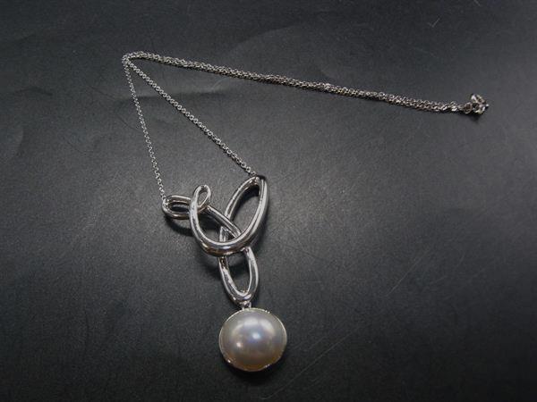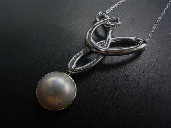 ■美品■ マべパール 本真珠 パール 約14mm SV925 ネックレス ペンダント アクセサリー レディース シルバー系×オーロラ系 DJ1955