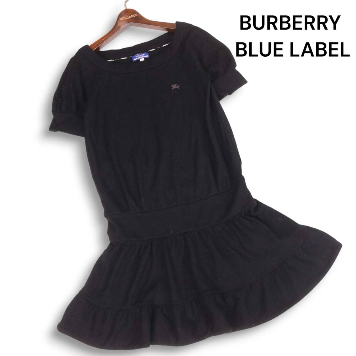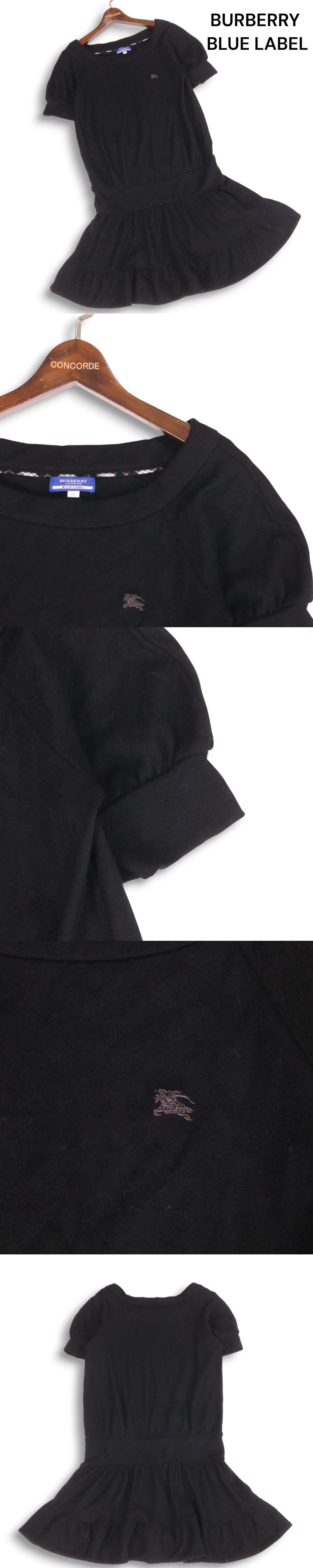 BURBERRY BLUE LABEL バーバリー ブルーレーベル ウール ホース刺繍 半袖 ニット チュニック ワンピース Sz.38 レディース