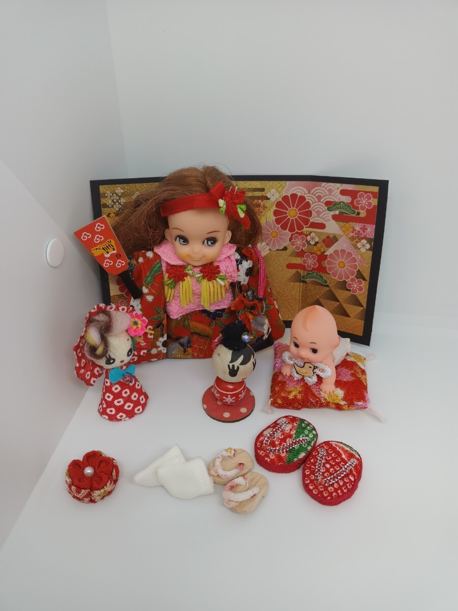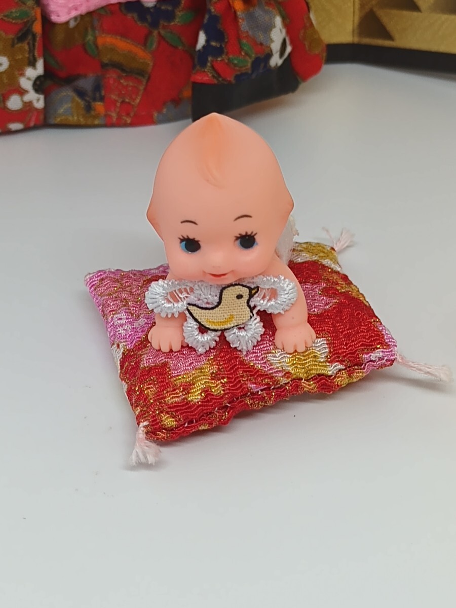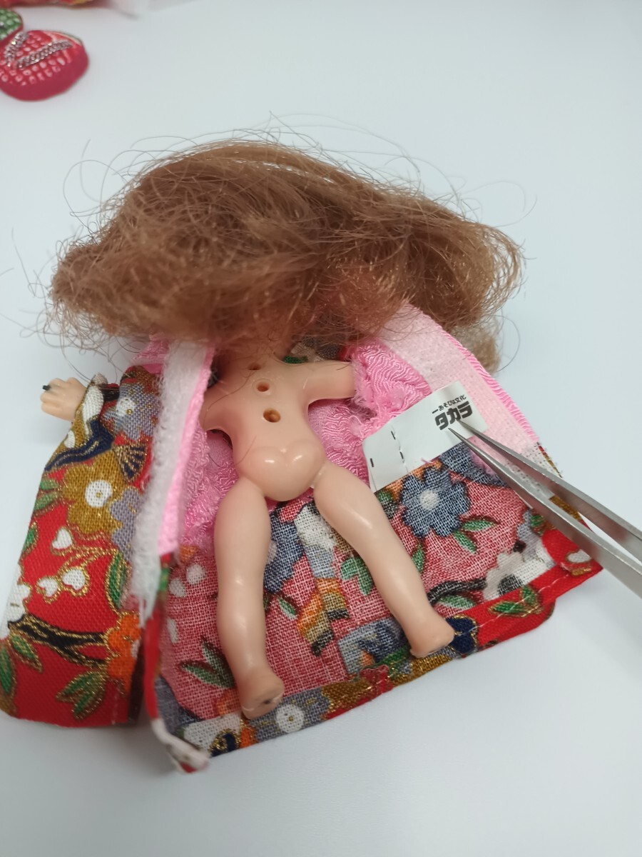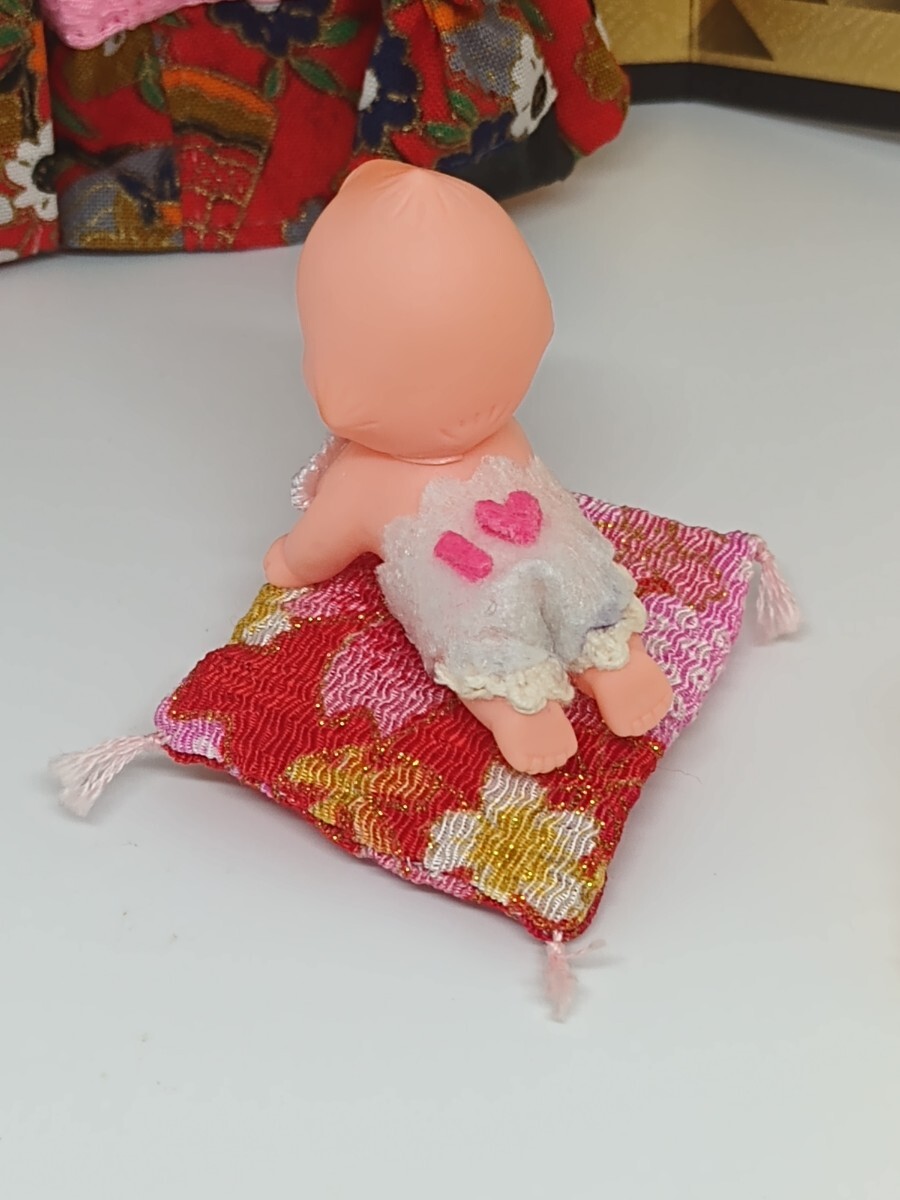 タカラタグ付きの着物髪飾り巾着(当時物)