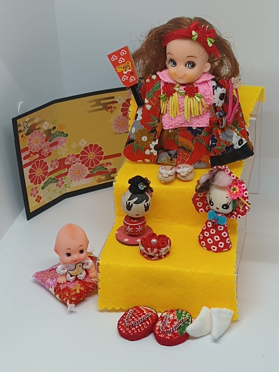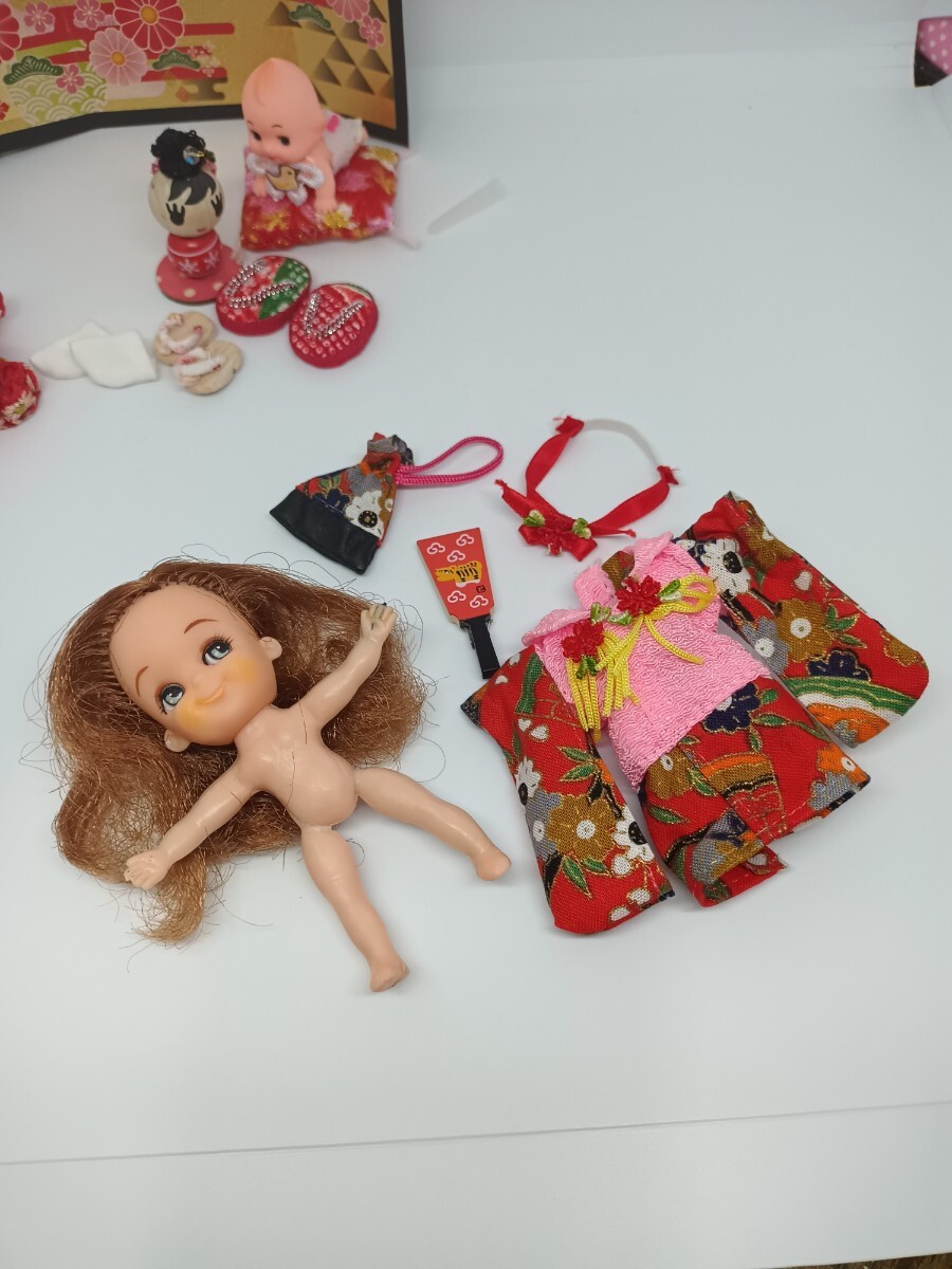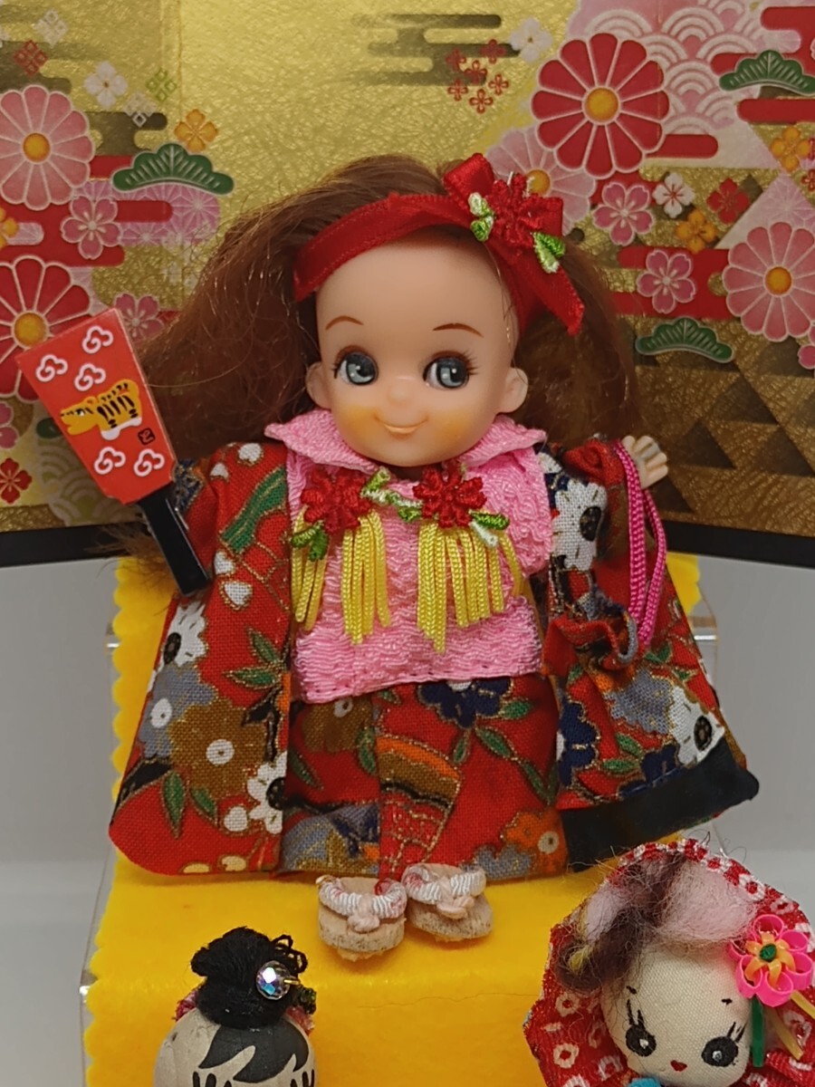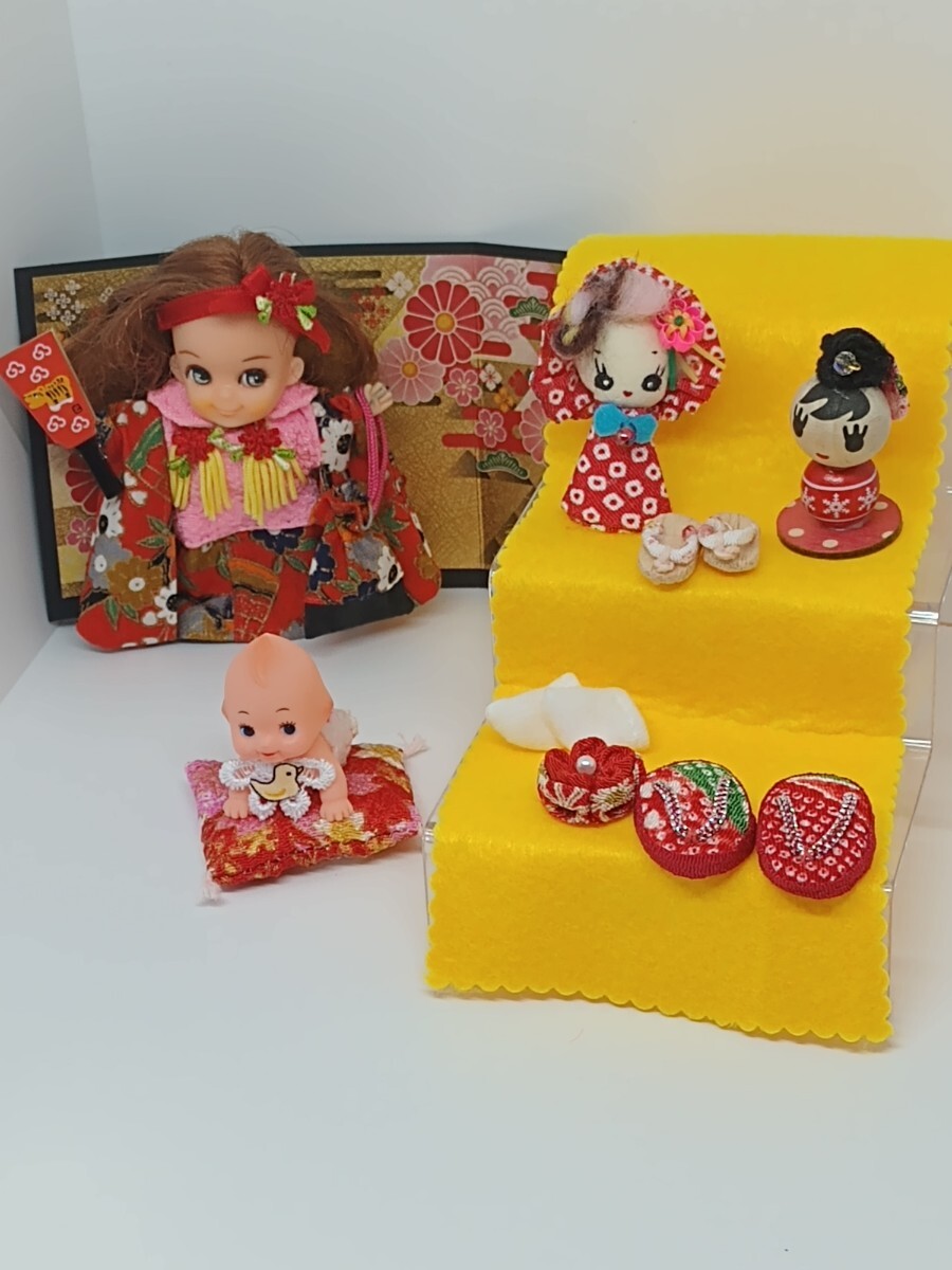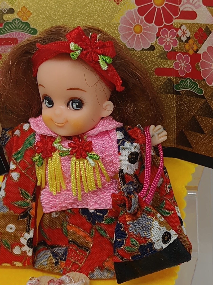 タカラタグ付きの着物髪飾り巾着(当時物)