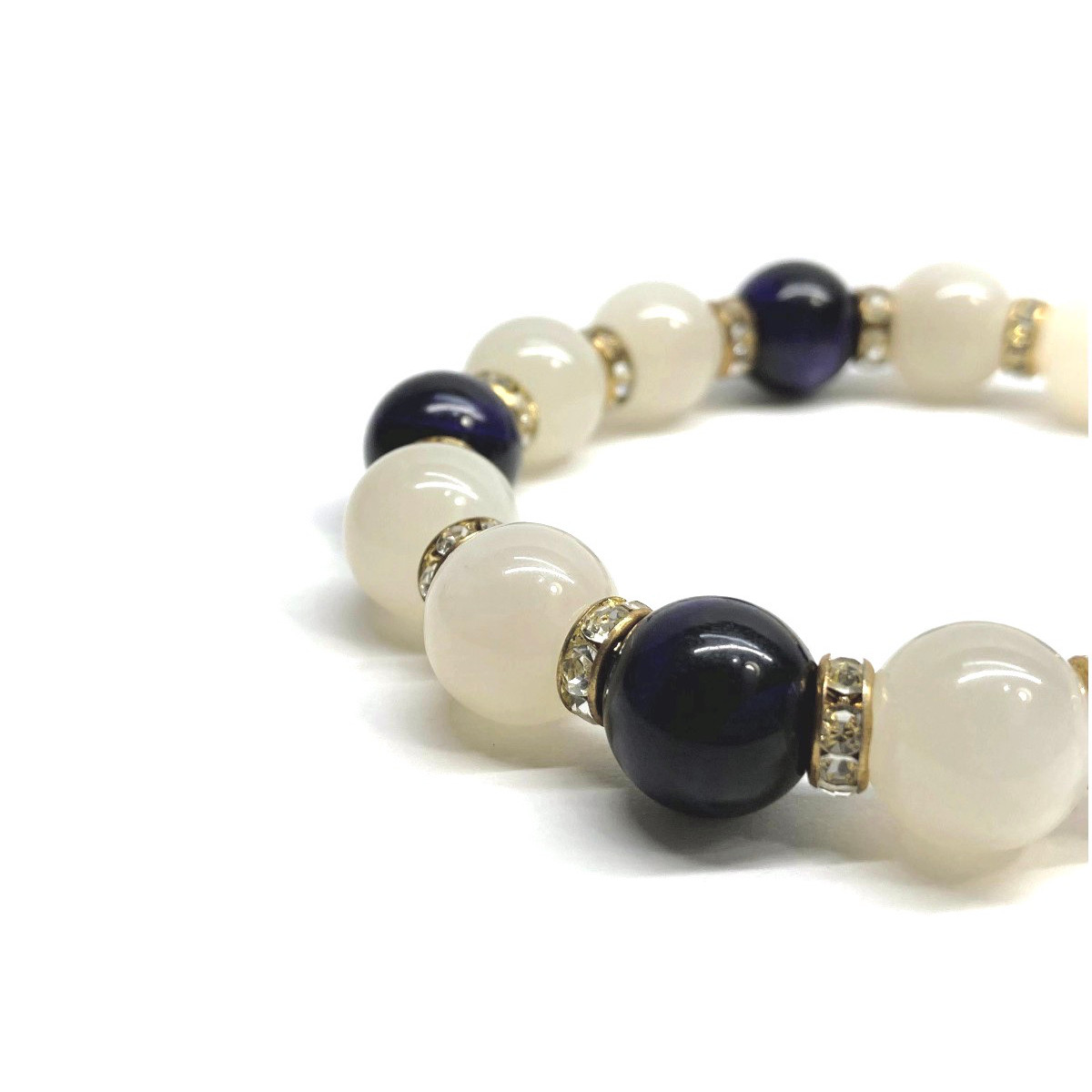 こちらは、ムーンストーンとパープルタイガーアイを組み合わせたパワーストーンブレスレットです。間にはロンデルを挟み高級感あるデザインに仕上げております。程よくインパクトがある12mm玉を使用して内周約18cmです。(サイズ変更の場合は取引ナビにてご連絡をお願いします。) 数に限りがございますので気になる方はお早めにどうぞ。