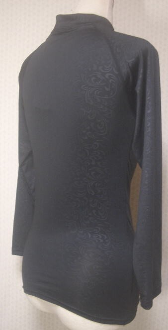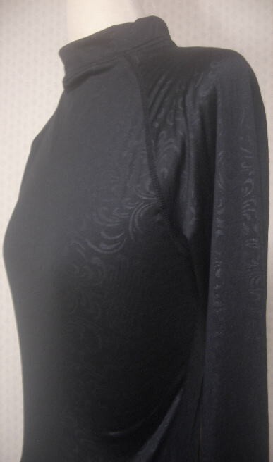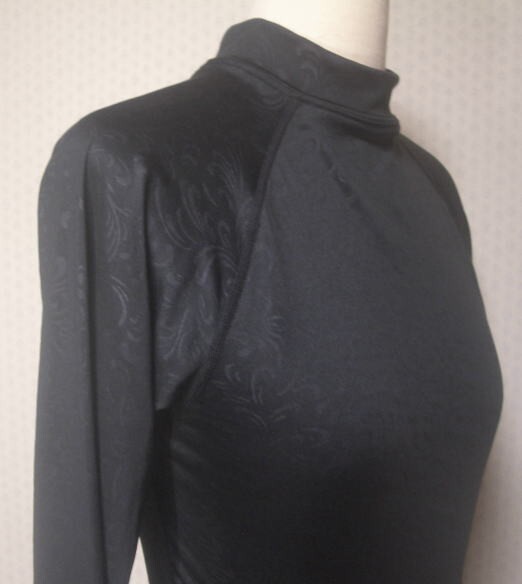 【送料無料!】レディス エンボスプリント(無地総柄) 長袖&モックネック ストレッチ&紫外線遮蔽 Tシャツ<黒:Mサイズ>2433171