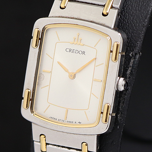 1円 稼働 セイコー 2F70-5600 QZ クレドール シルバー文字盤 レディース腕時計 5237100 9PRT KMR