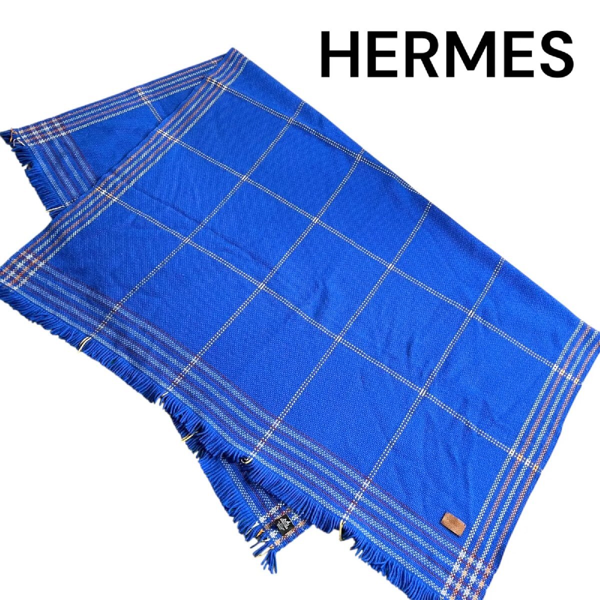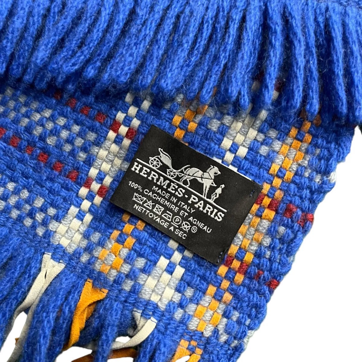 ●エルメス HERMES チェック柄 手織りカシミヤ ブランケット 膝掛け ミニ毛布 S5Q793