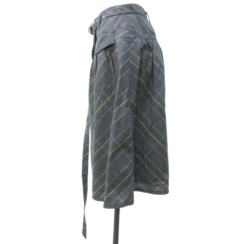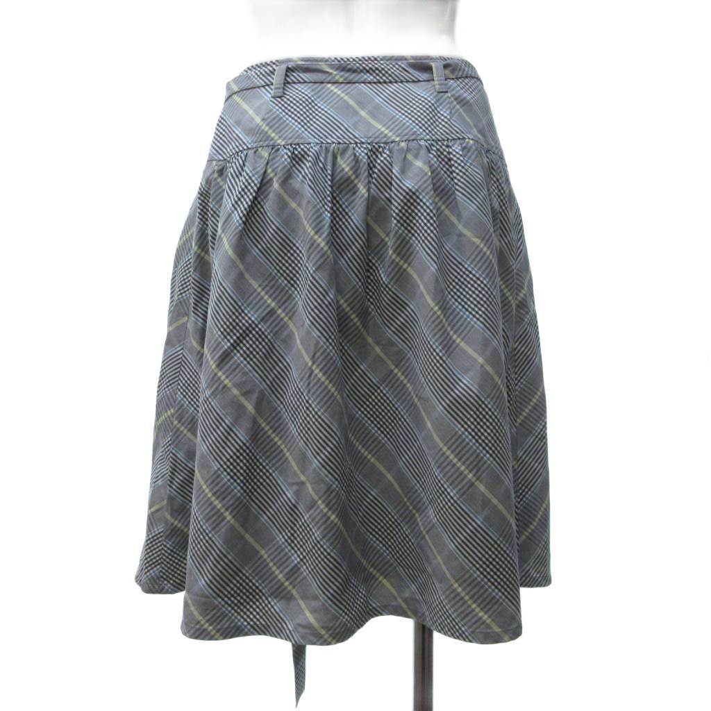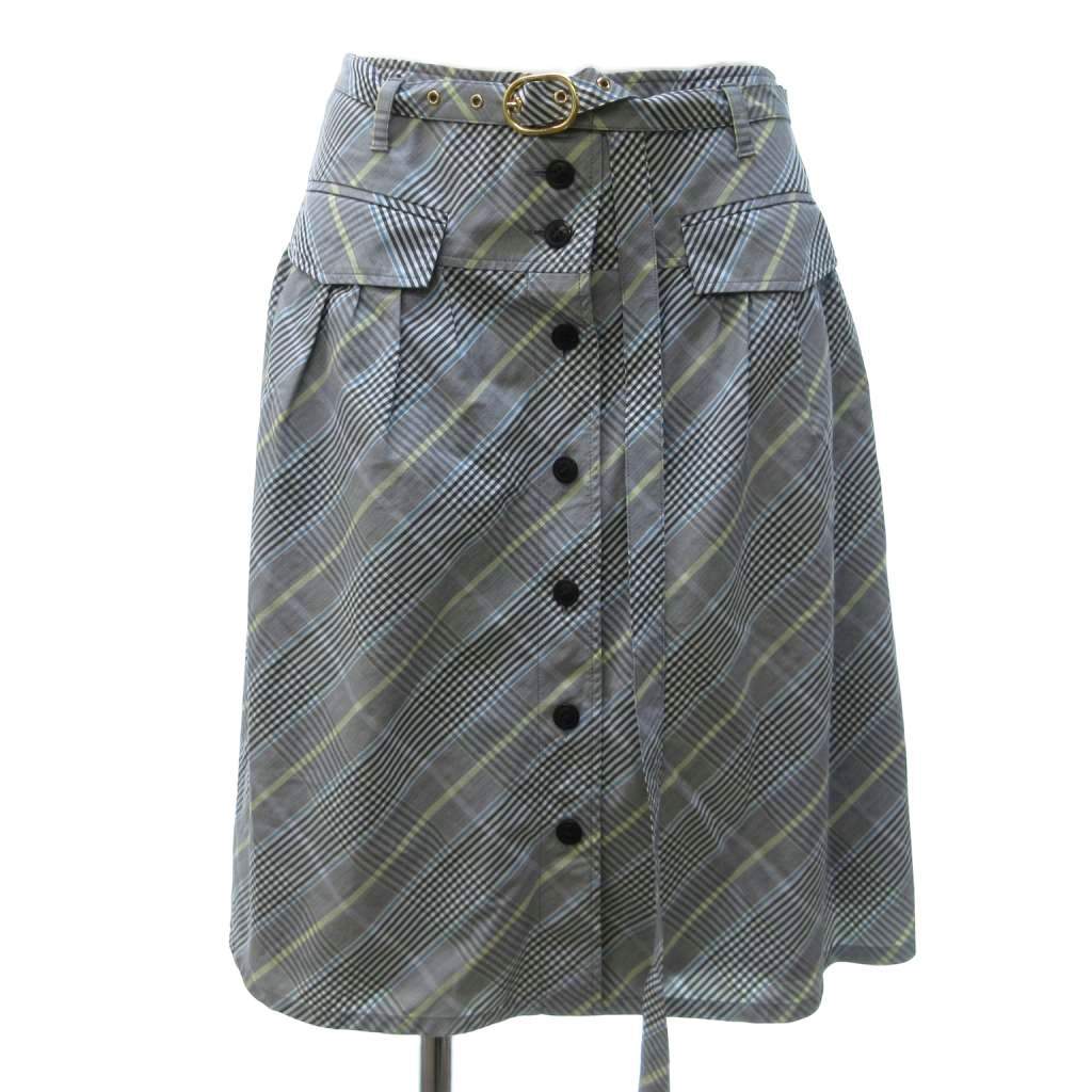 バーバリーブルーレーベル BURBERRY BLUE LABEL 美品 チェック柄 ベルテッド ひざ丈 スカート フレア マルチカラー グレー 38 約M