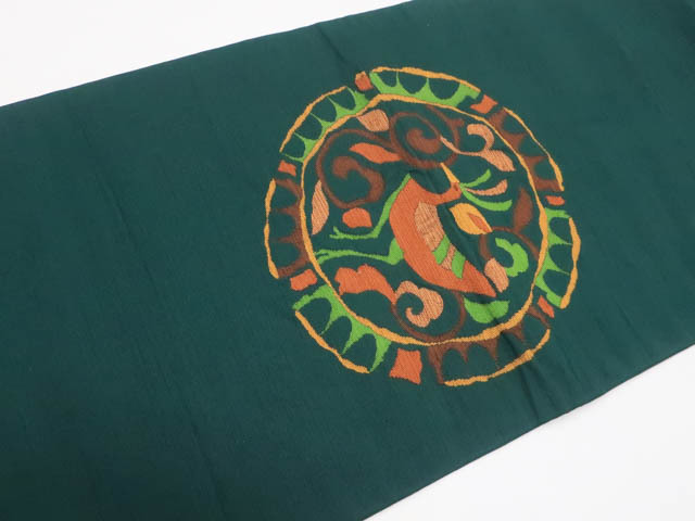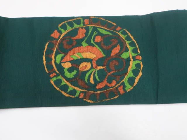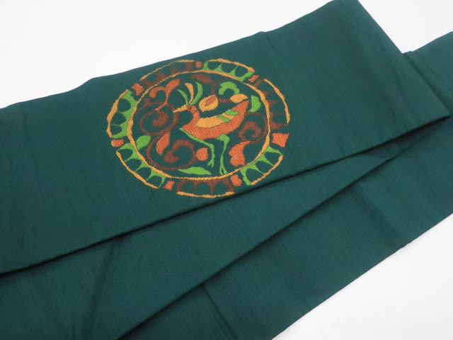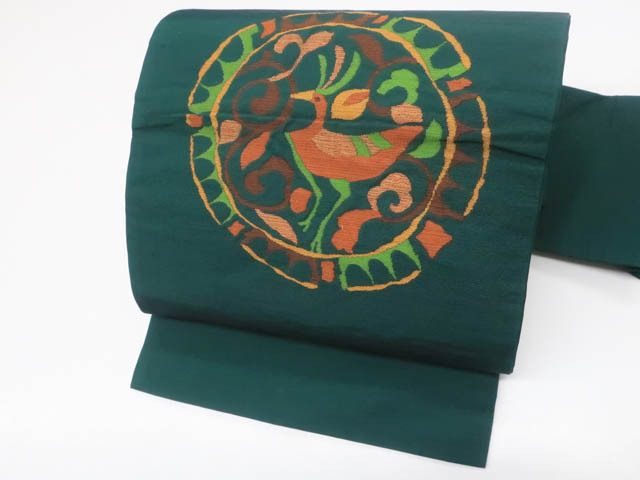 リサイクル商品のため、お太鼓に薄汚れがございますが、ご使用可能なお品でございます。 地色は、緑色です。 1枚目の画像が近いお色かと思われます。 素材は正絹です。 |