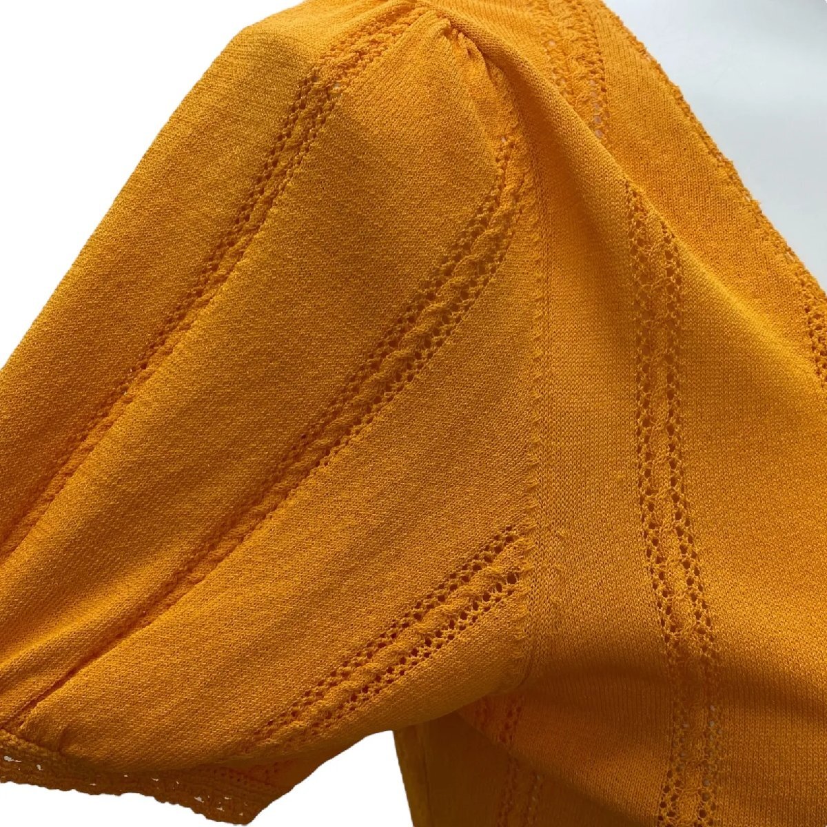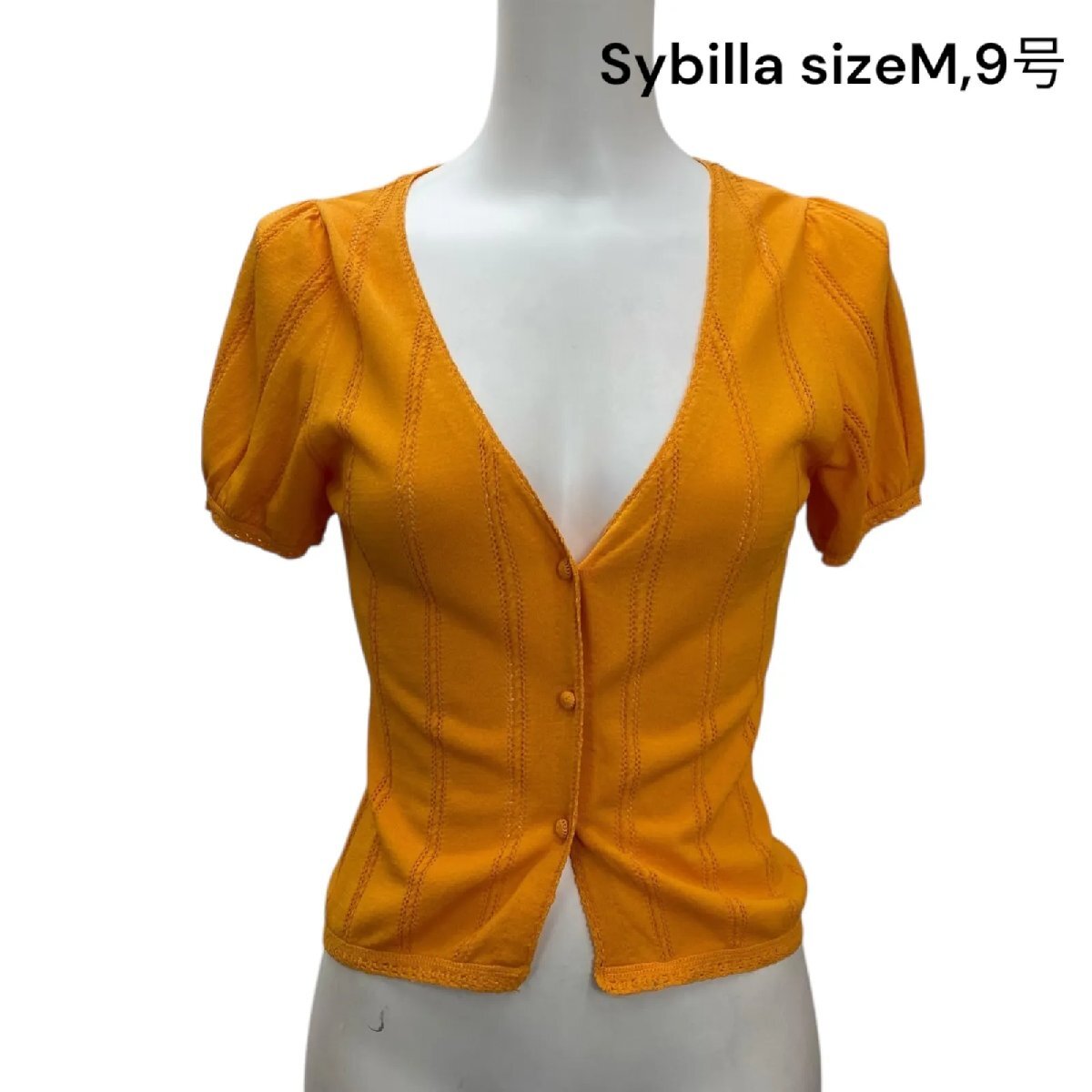 シビラ Sybilla カーディガン トップス 半袖 ニット オレンジ 透かし編み M、9号 レディース S5S117