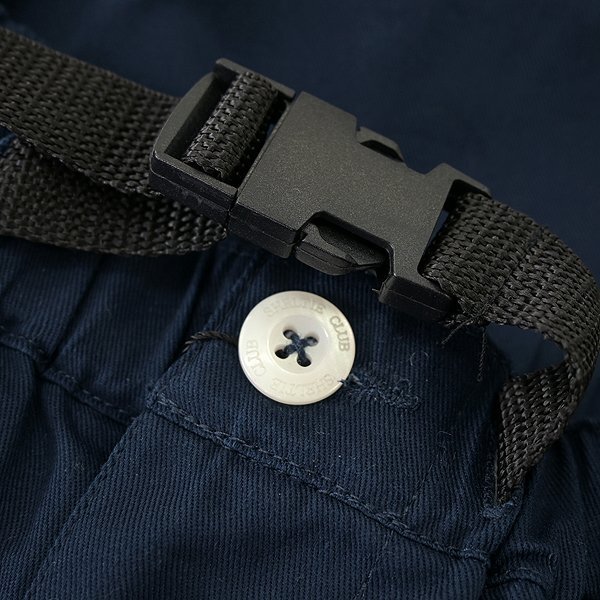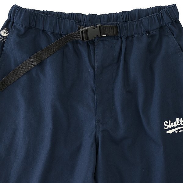 【Sheltie Club】 〈湘南の海〉をテーマとしたブランドコンセプトに沿って、マリンテイストを味付けしたシンプルなスタイルを信条とし、ラフで、気取らず、気張らない、ややゆったりとした着こなしを提案します。 ウエストゴムの快適イージー仕様に加えて、ウェビングベルトを備えたクライミングショートパンツです。 適度に密度やハリを保ちつつ通常よりも通気性を高めた、ライトな風合いのコットンツイル素材を使用しています。 綿100%ですがナチュラルなストレッチ性があり、動作性が良いのも魅力的なポイントです。 ブランドのトレードマークであるシェットランドシープドッグのワンポイント刺繍、ロゴフロッキープリント、後ろポケットに骨をモチーフとしたビス装飾、裾にはマリンテイストなラインプリントが施されています。 【デザイン】 ・ノータック ・ジッパーフライ ・ウエストゴム入り ・ウェビングベルト付き(取り外しできません) |