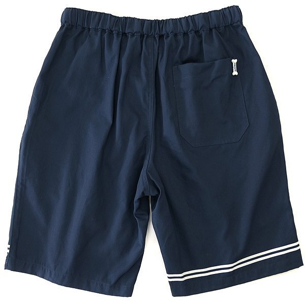 新品 未使用 紙タグあり Lサイズ(画像は別サイズで撮影) ウエスト84~94 ※商品に記載されたサイズ・寸法です※ ウエスト89~94cm(内回り1周・ゴム入り) 股上29.5cm 股下27cm 裾幅29.5cm 腿幅33.5cm(股下10cm部分) 綿100% ネイビー |