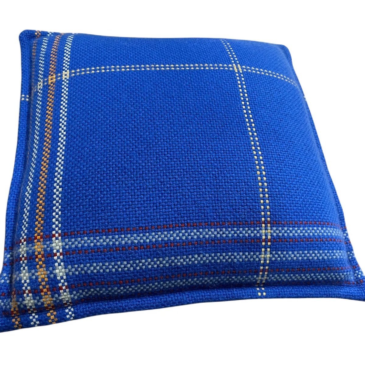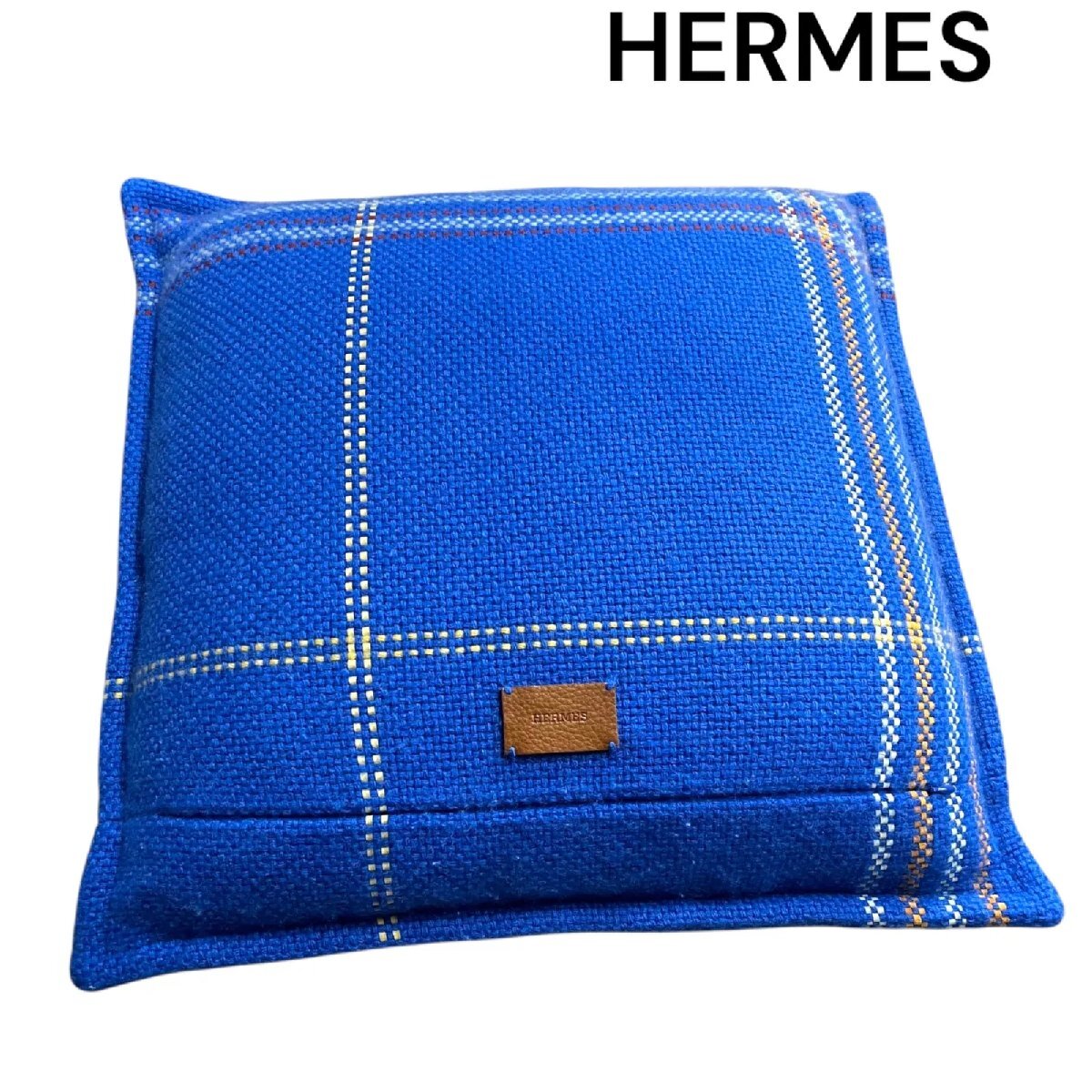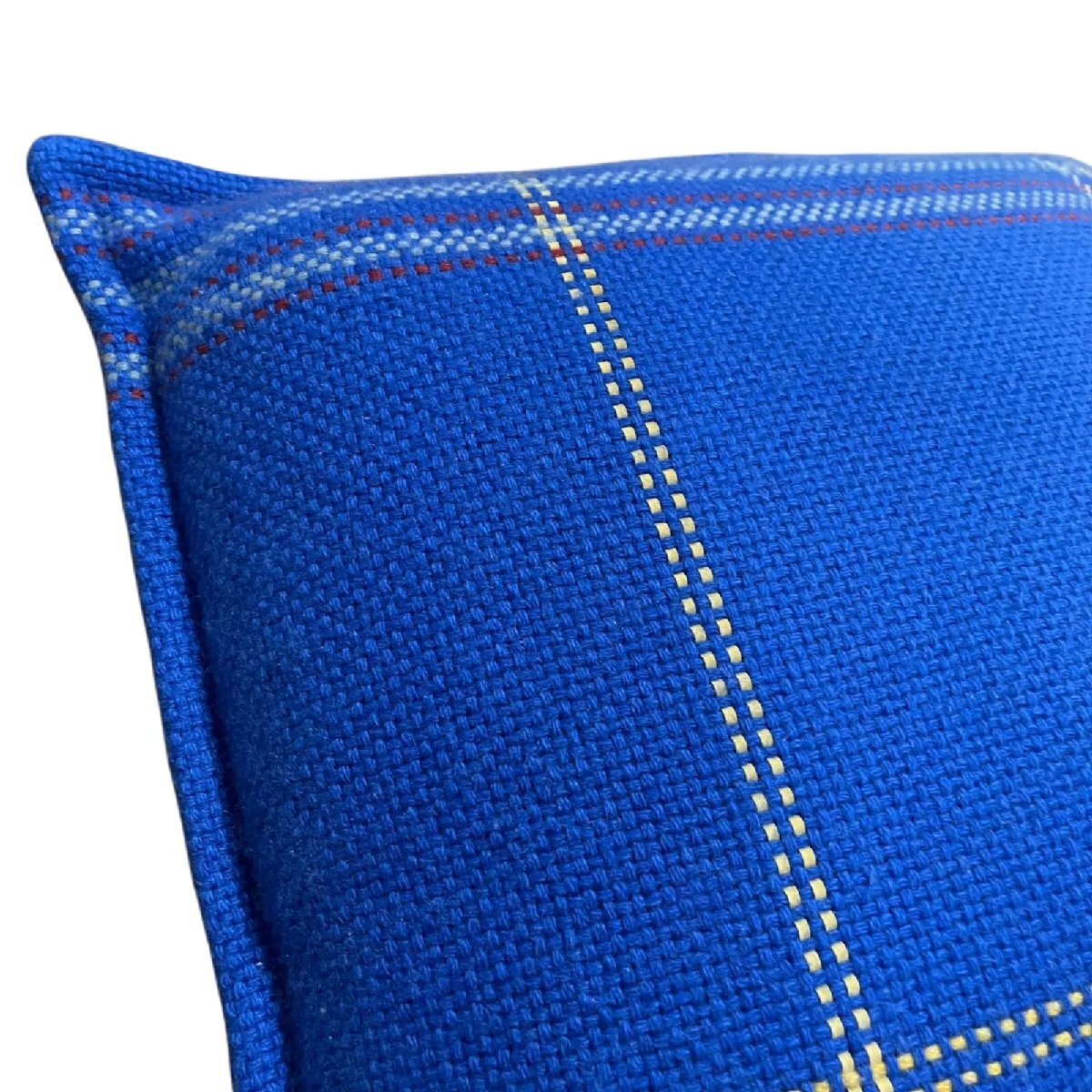 ●エルメス HERMES チェック柄  手織りカシミア素材 Navetteクッション ブルー S5Q791