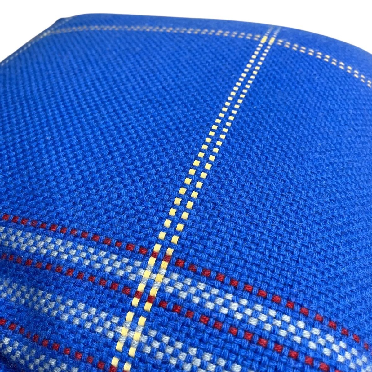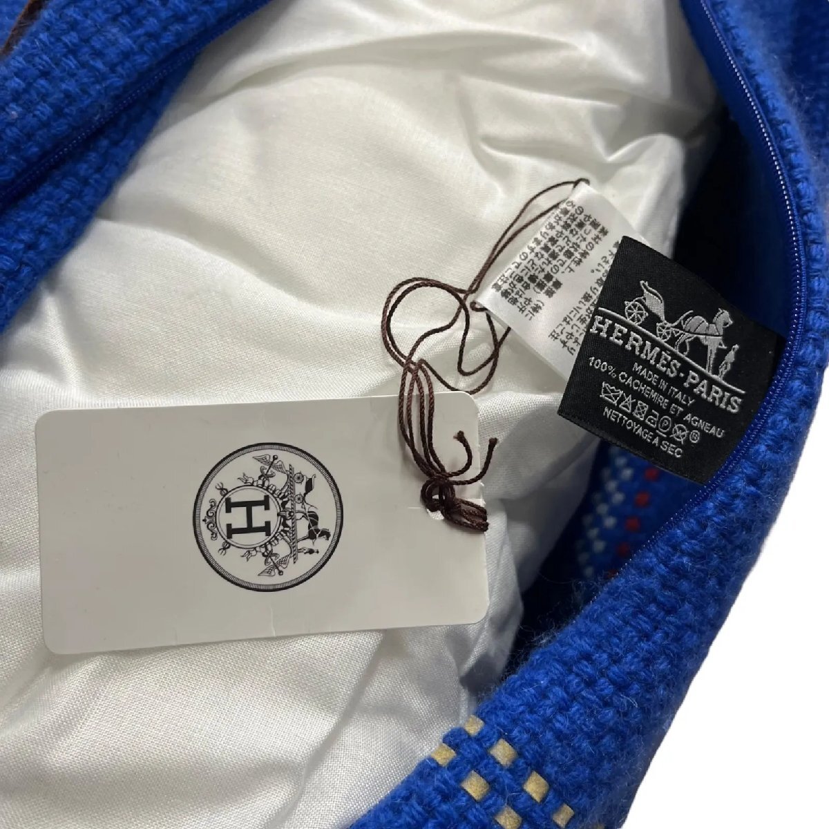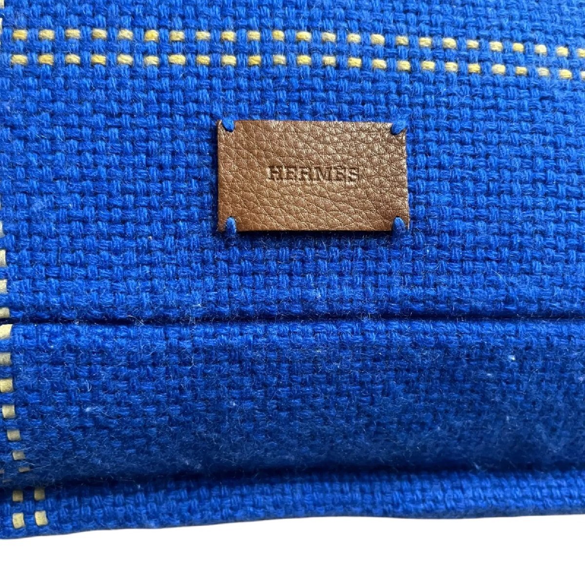 ●エルメス HERMES チェック柄  手織りカシミア素材 Navetteクッション ブルー S5Q791