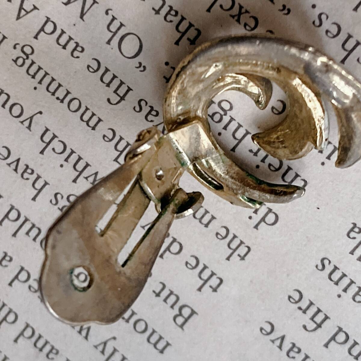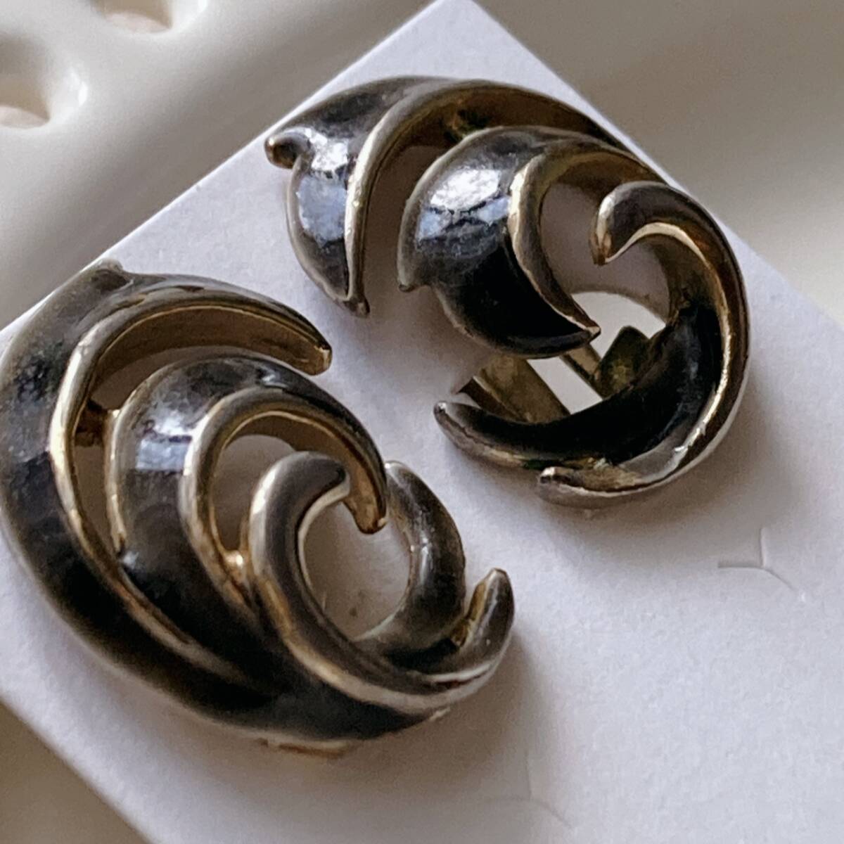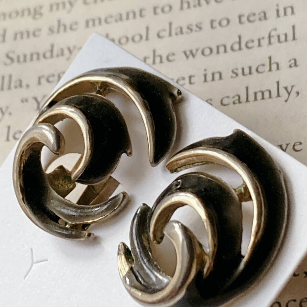 ヴィンテージイヤリング うずまき 羽 ゴールドトーン ブラック アンティーク☆vintage jewelry accessories F0244