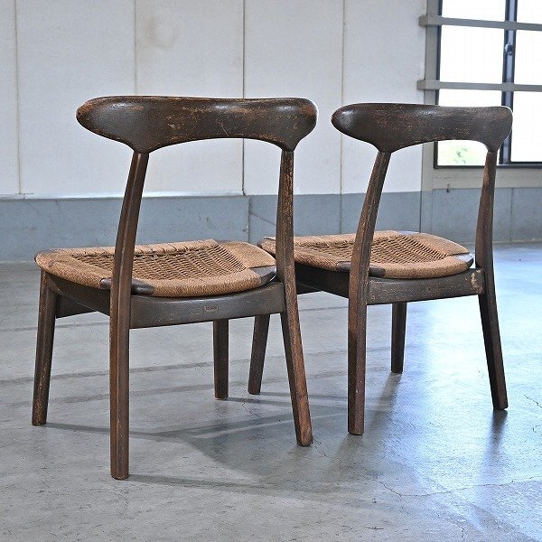 コスガ ダイニングチェア 2脚セット オーク無垢材 ペーパーコード リビング 和製ビンテージ クラシカル 楢 ナラ KOSUGA