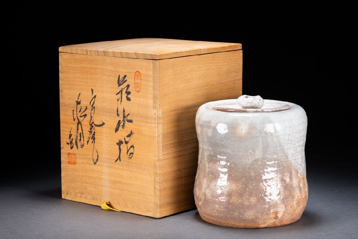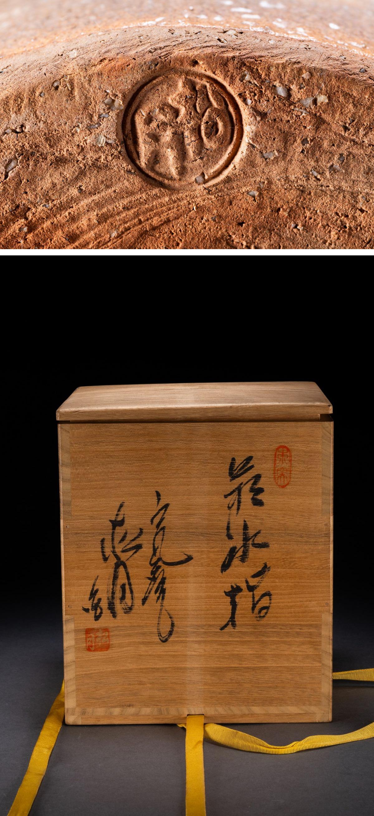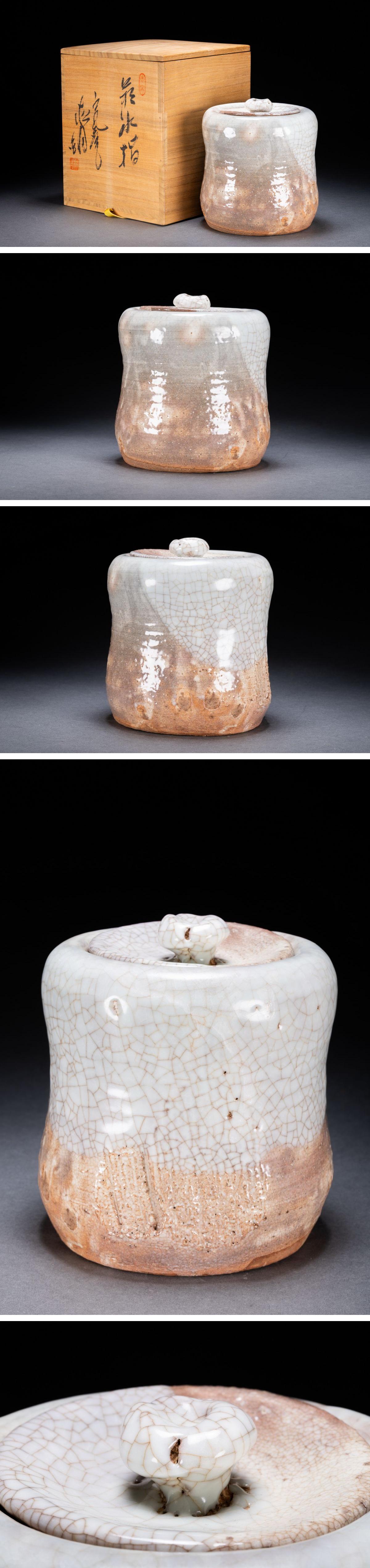 【清】萩焼「松月」造 萩水指 茶道具 直入識箱 共布 真作保証 美術品WK9-11