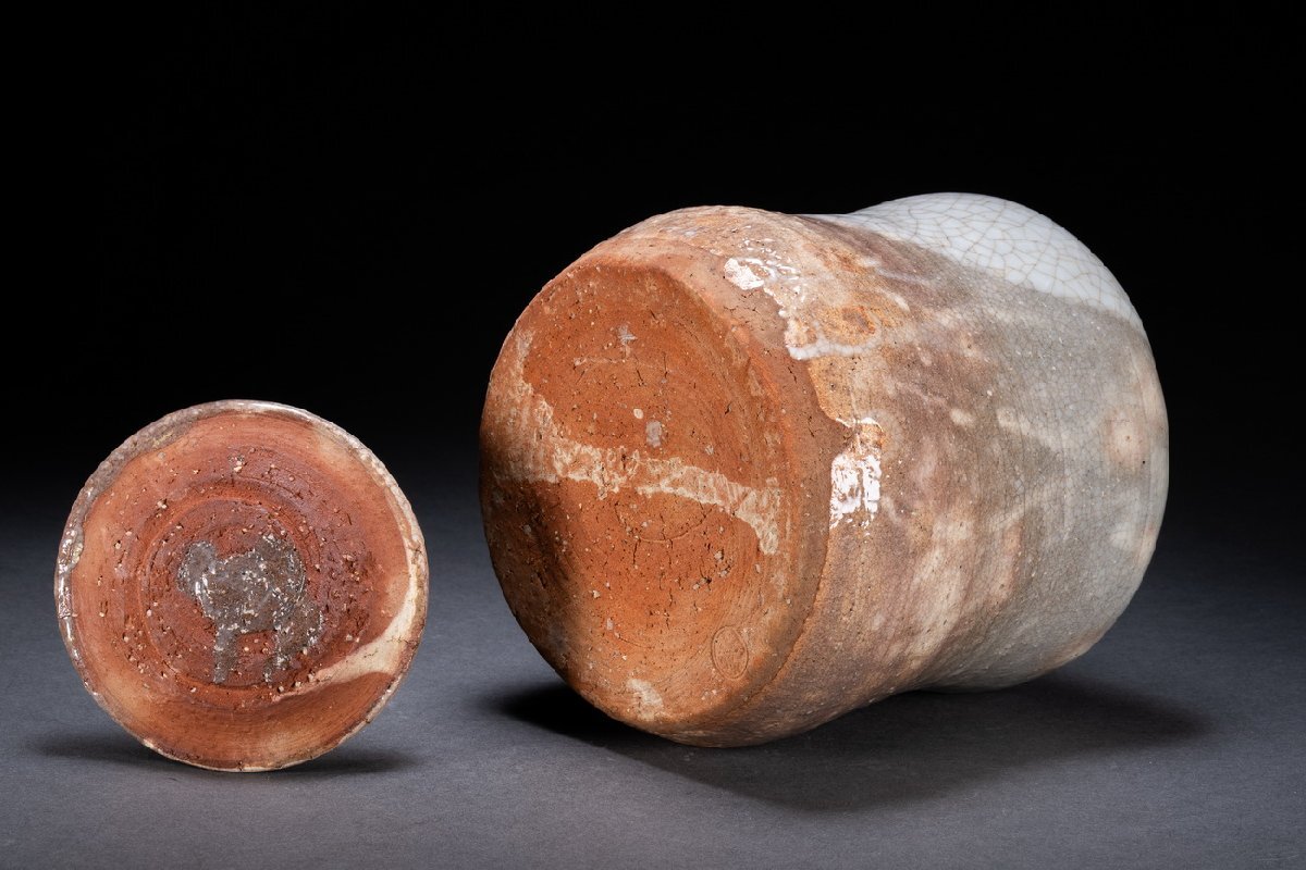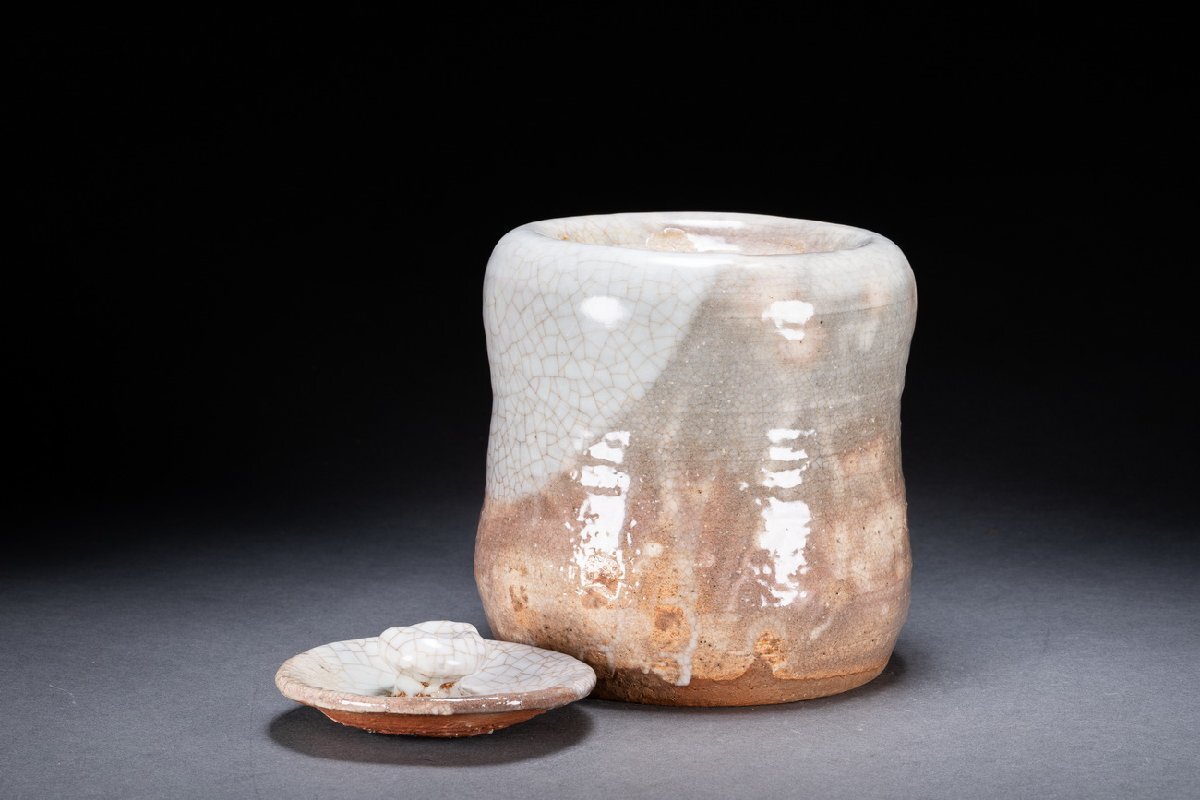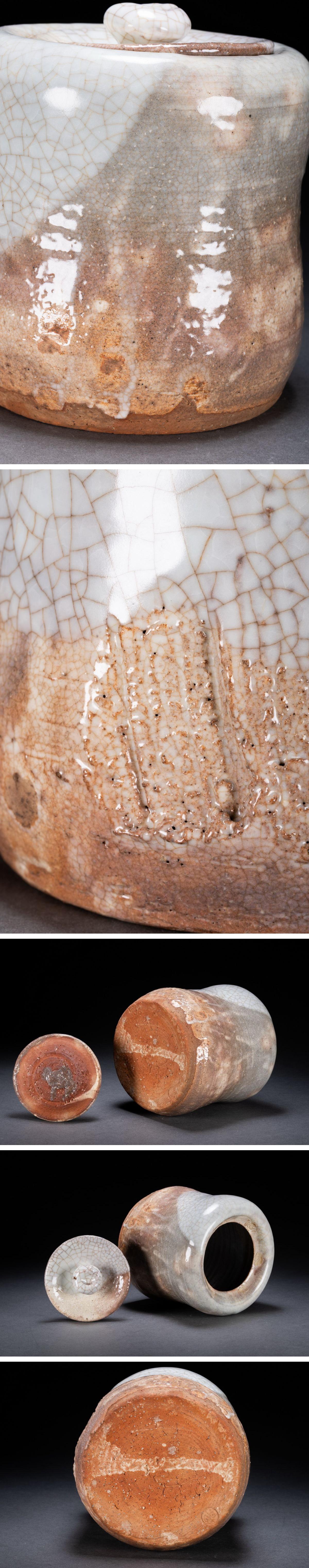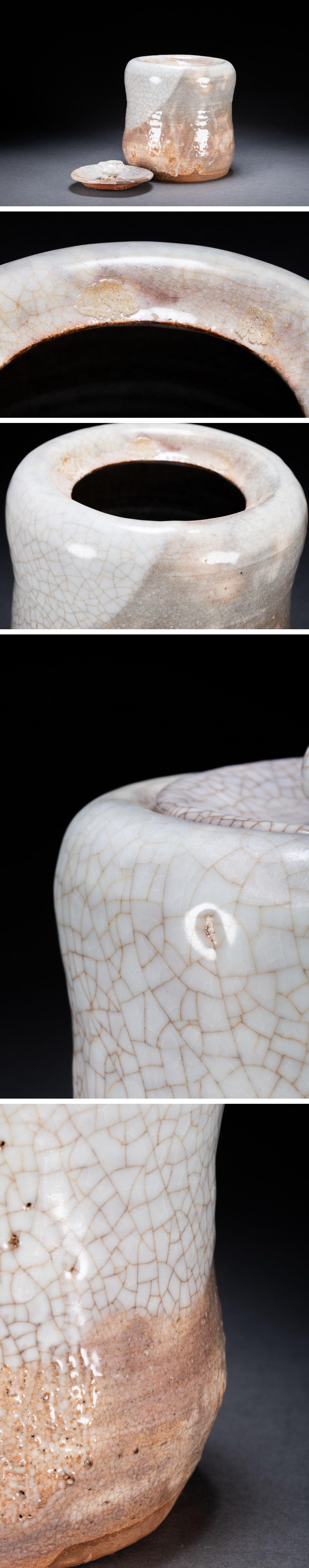 【清】萩焼「松月」造 萩水指 茶道具 直入識箱 共布 真作保証 美術品WK9-11