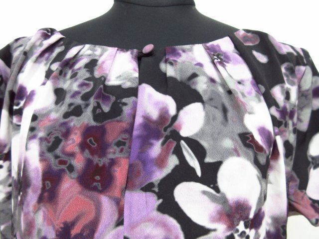 t2836 タグ付き未使用保管品 ローラアシュレイ ワンピース 19,950円 半袖 ひざ丈 ブラックxパープル系/花柄 サイズUK14/USA10