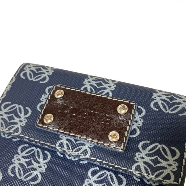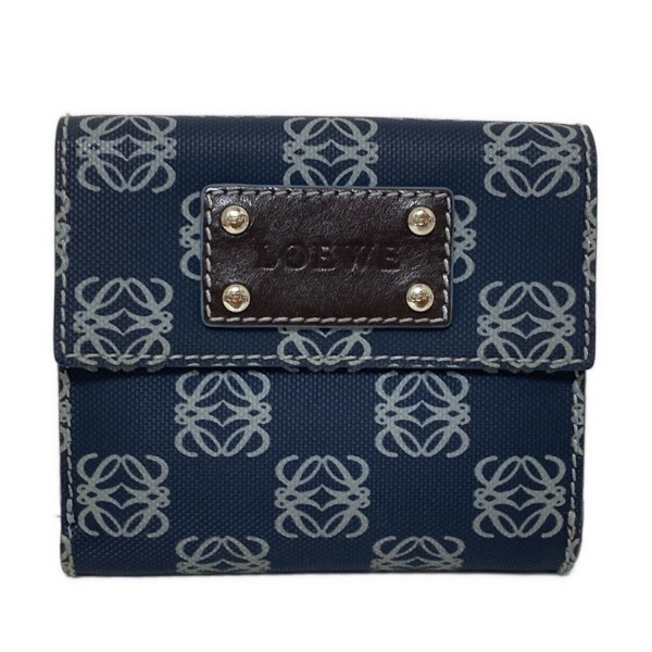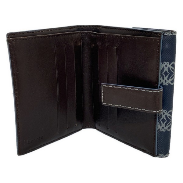 ロエベ LOEWE Wホック財布 アナグラム柄 レザー ダークネイビー×ライトグレー×ダークブラウン 財布