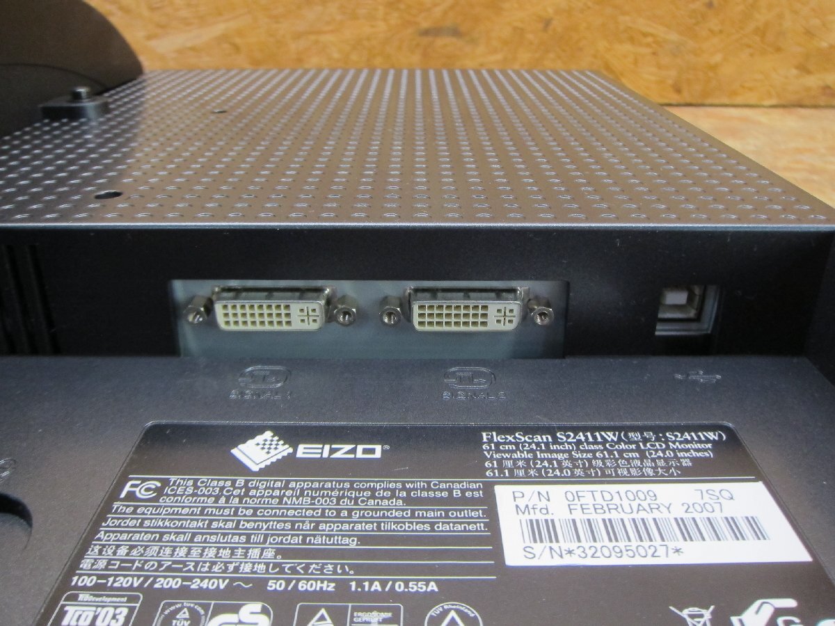 EIZO・FlexScan S2411W 24.1インチ液晶モニター ーーーーーーーーーーーーーーーーーー ●メーカー :EIZO ●型 番:FlexScan S2411W ●品 名:24.1インチ液晶カラーモニター ●解 像 度:WUXGA(1920x1200) ●端 子:DVI ーーーーーーーーーーーーーーーーーー ●使用時間 :19533H ーーーーーーーーーーーーーーーーーー ●使用時間は動作確認上、若干使用時間が増える場合もあります。 ●DVI接続の動作を確認済みです。その他の端子は確認しておりません。 ●液晶表示はシミ、モヤなどは見当たらず発色良好です。 ●ドット抜けなどはパッと見た感じでは見受けられません。 ◎付属品 ACケーブル、DVIケーブル ※上記記載以外の付属品はありません。 ◎外観について 本商品は中古品です。経年・使用に伴う擦り傷/汚れがあります 外観等を著しく気になさる方や新品に近い美品をご希望の方はご遠慮ください ◎液晶画面について注意事項 ・モニタのドット欠け/常時点灯に関しては、当方の見落とし、配送の段階で発生することもありますので 位置に関係なく保証対象外とさせて頂きます。予め理解願います。 現段階ではドット欠け・常時点灯はありませんが小さな物等は発見困難ですのでご理解ください。 ・非常に優れたモニターだと思いますが、色彩表現に厳密な正確性を求める方にはお勧めしません。 ●詳しい仕様等、商品についてはメーカーサイトなどをご参照ください ●動作確認は簡単なチェックまでです。全ての機能を確認したわけではありません ※保証期間内であっても,水没・落下などお客様が原因で起こった不具合は保証対象外です
