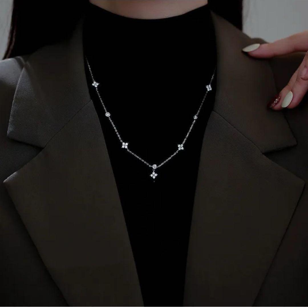 2mm〜3mmサイズのストーンが等間隔にセッティングされたステーションネックレス。
