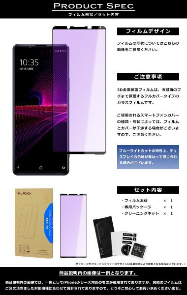 <ブルーライトカット> Xperia1 III ブルーライト カット フィルム 3D 全面保護 Xperia 1 III SO-51B SOG03 ガラスフィルム 黒縁 フィルム