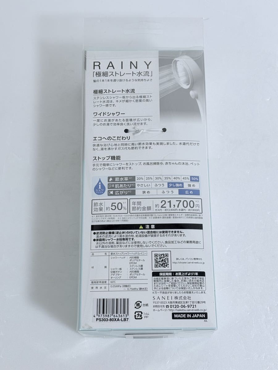 【商品写真、商品説明、発送詳細、出品者プロフィール、注意事項をよくご覧になり、ご理解・ご了承をいただいた上で購入を検討してくださいますようお願いいたします。】 閲覧いただきありがとうございます。 『SANEI RAINY レイニー 節水ストップシャワーヘッド PS303-80XA-LB7 ブルー 未使用未開封品』です。 ※こちらの商品は未使用未開封品ですが、外装パッケージに目立つ傷みがあります。写真を参照してください。 ☆極細ストレート水流…髪の1本1本を通り抜けるような気持ちよさ。ステンレスシャワー板から出る極細ストレート水流は、キメが細かく密度の高いシャワー感です。 ☆ワイドシャワー…一度にお湯があたる面積が広いから、少しのお湯で効率良く洗い流せます。 ☆エコへのこだわり…快適な浴び心地と同時に高い節水効果も実現しました。水道代だけでなく、湯を沸かすガス代も節約できます。 ☆ストップ機能…手元で簡単にシャワーをストップ。お風呂掃除や、赤ちゃんの沐浴、ペットのシャワーなどに便利です。 ◎材質…シャワーヘッド:ABS樹脂、ポリアセタール、EPDM、ステンレス鋼 / シャワー板…ステンレス鋼 / 切替ボタン:ABS樹脂 / アダプター:ポリアセタール / オーリング:EPDM ◎最高使用温度…60℃ ◎使用水圧…0.05MPa(流動圧)~0.75MPa(静水圧) ◎カラー…ブルー ◎型番…PS303-80XA-LB7 ◎メーカー…SANEI 株式会社 ◎MADE IN JAPAN ※当方はこの品物については知識がありません。わかる方のみ購入の検討をお願いします。 ★本体に傷や汚れ等あります。写真で判断の難しい傷や汚れがあるかもしれません。 ★未使用未開封品ですが、長期保管品となります。 ★ご理解の上、購入の検討をお願いします。 ※状態等は商品写真や商品説明を参考にしてください。 ※出品者プロフィールや注意事項および発送についても必ずよくご覧いただいてから購入を検討してくださいますよう、よろしくお願いいたします。 | ||