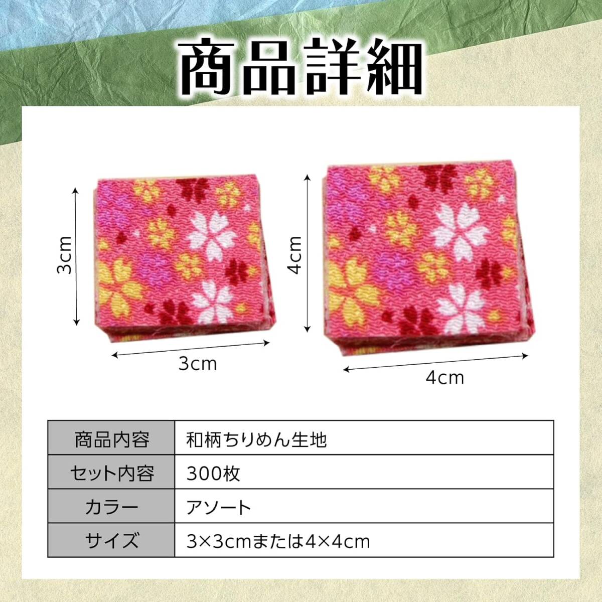小さな布から無限のアイデア ちりめん生地 カット済み 300枚セット 4cm 和柄 ハギレ はぎれ 正方形