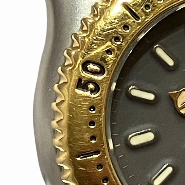 【ブランド】 タグホイヤー 【商品名】 セル 【型番】 S95.208M 【ムーヴメント】 クォーツ 【材質】 SS×GP 【サイズ】 ケース幅(リューズを含まず)×厚さ×腕回り(内径)×重さ 約24.5mm×8mm×15.5cm×50.4g 【カラー】 グレー文字盤 【付属品】 なし 【ランク】 B (使用感あり) 【状態】 風防:キズなし 文字盤:劣化あり 針:かなり劣化あり リューズ:小キズあり ケース:小キズあり、擦れあり ベゼル:キズあり、擦れあり ベルトのキズ:キズあり、擦れあり ベルトの伸び:やや伸びあり ※6ヶ月保証(注1 | |
