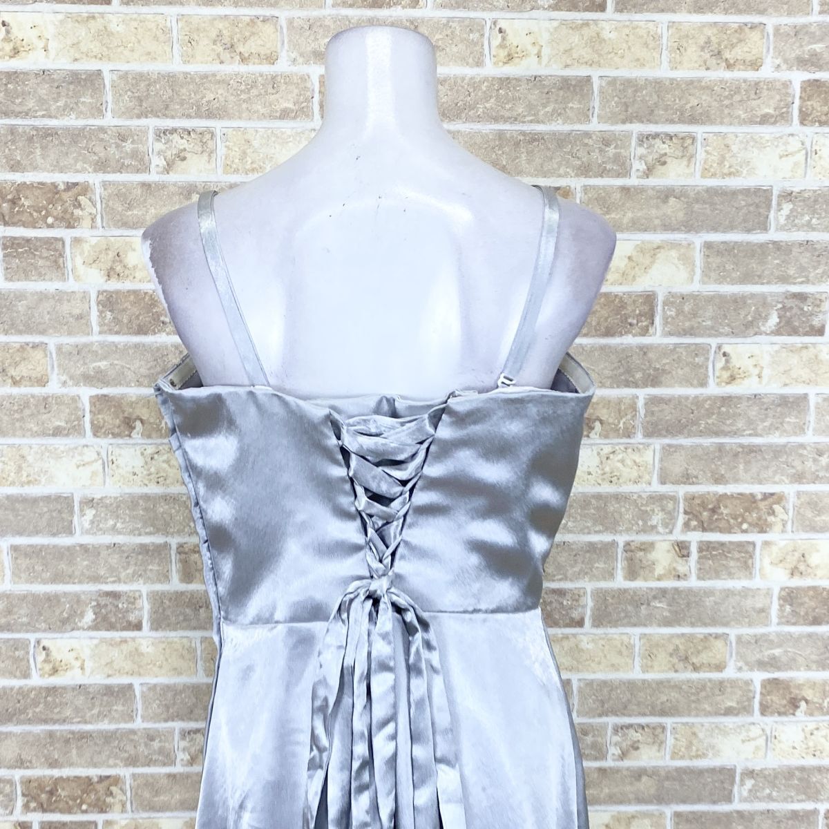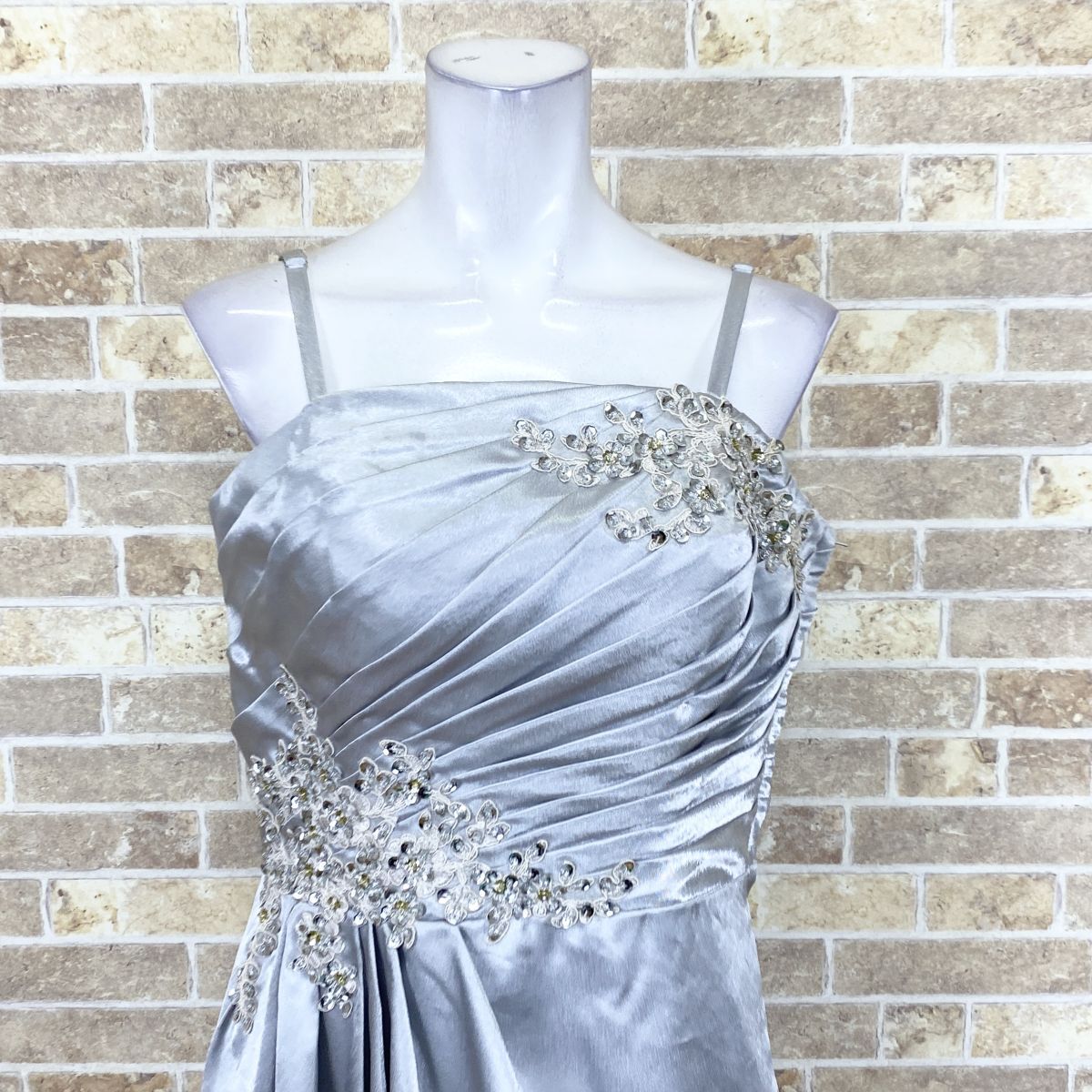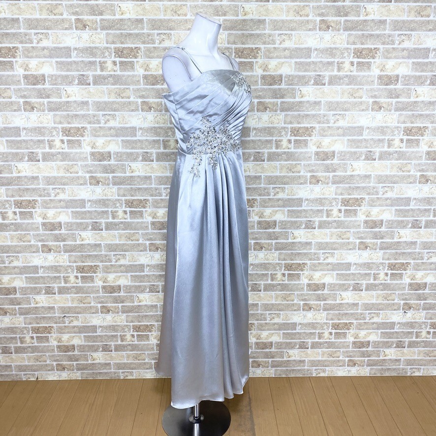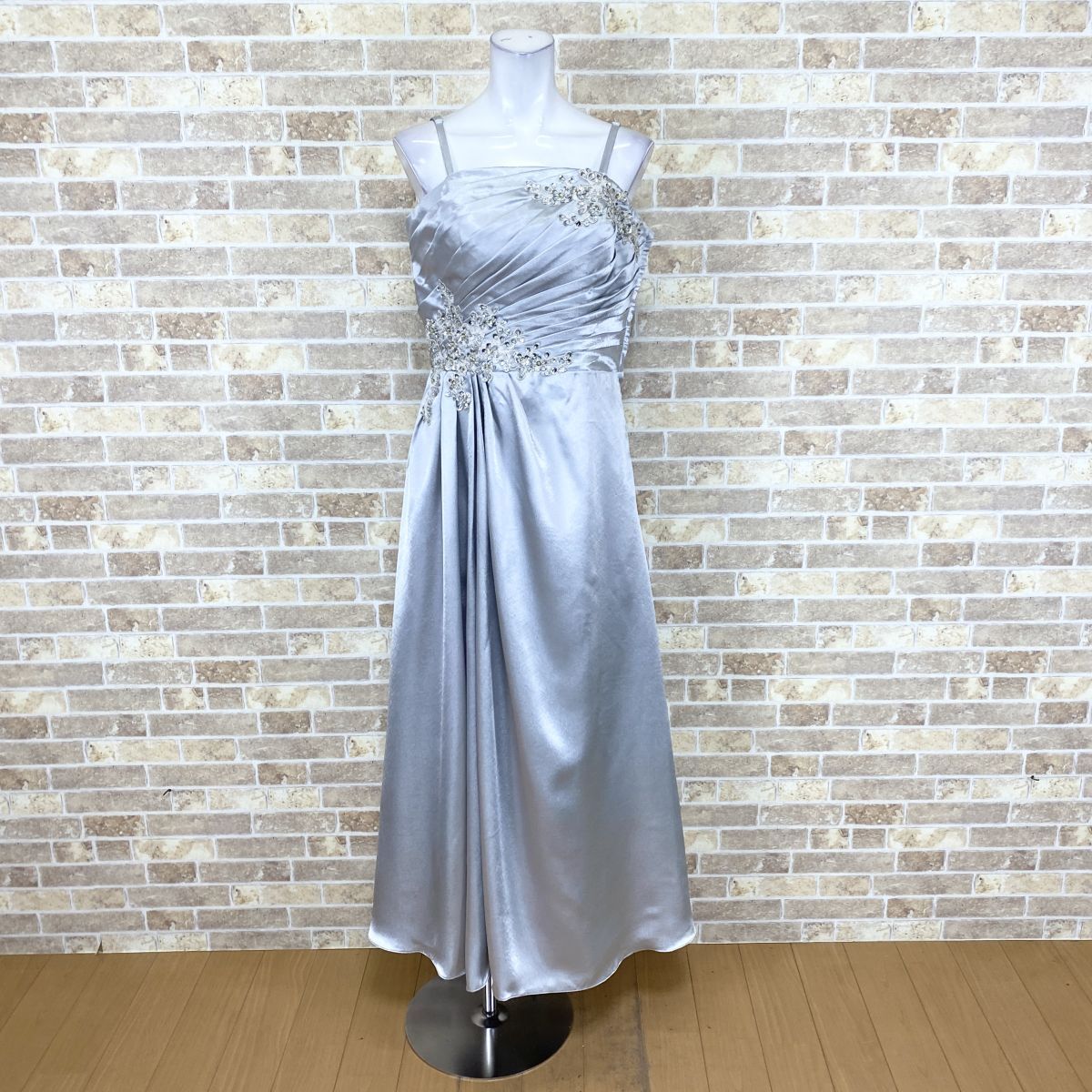 1円 ドレス ロングドレス 15 シルバーグレイ光沢 パーティードレス カラードレス キャバドレ 発表会 イベント 中古14696