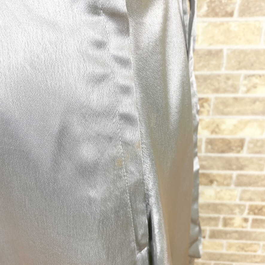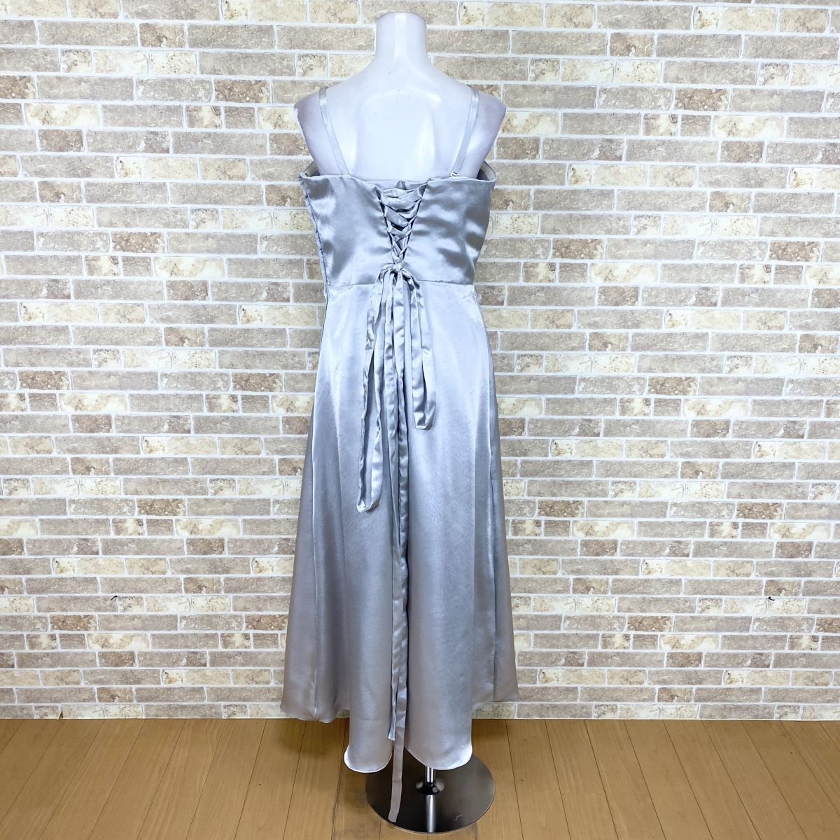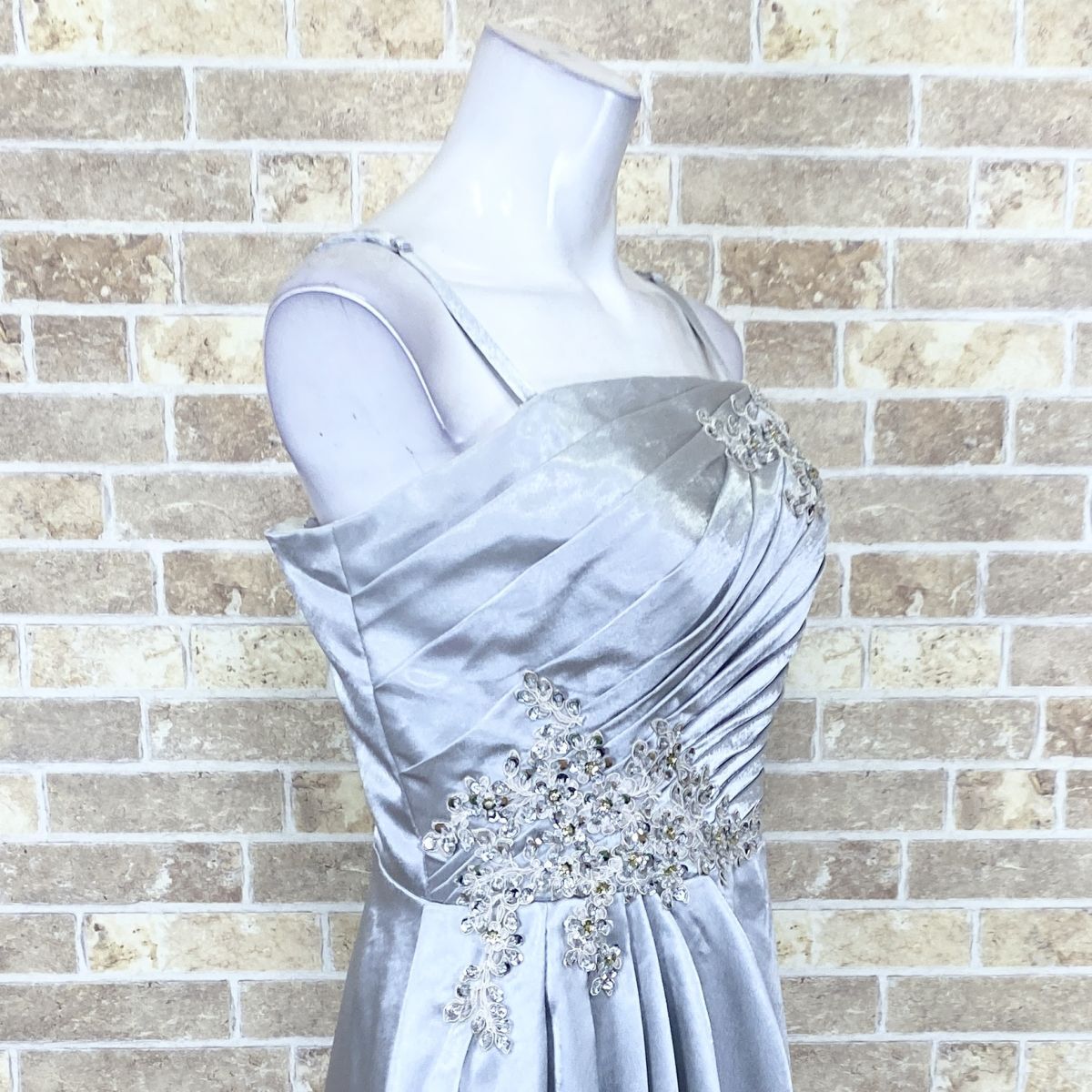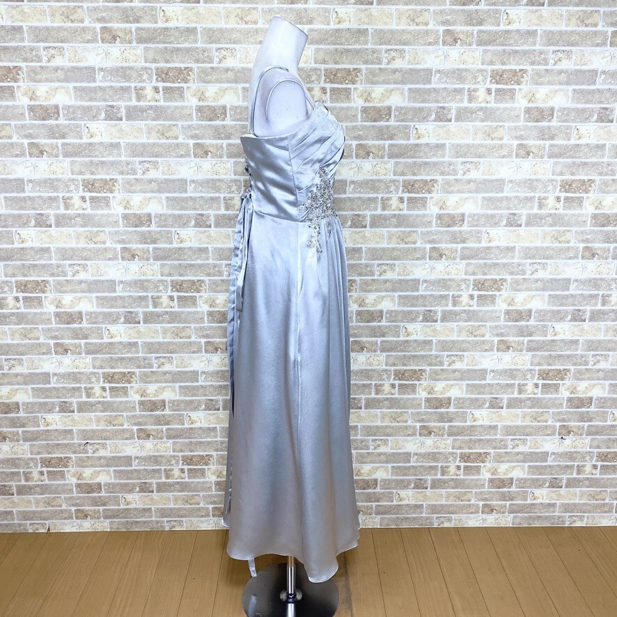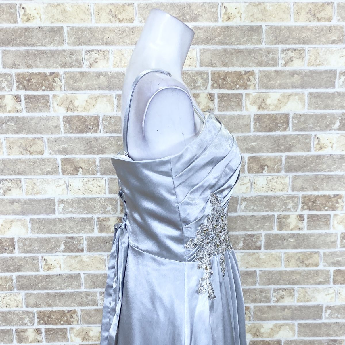1円 ドレス ロングドレス 15 シルバーグレイ光沢 パーティードレス カラードレス キャバドレ 発表会 イベント 中古14696