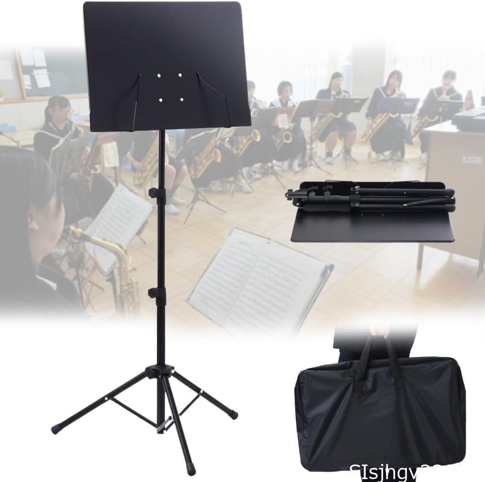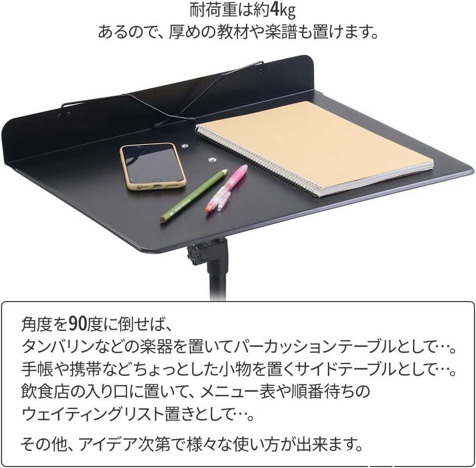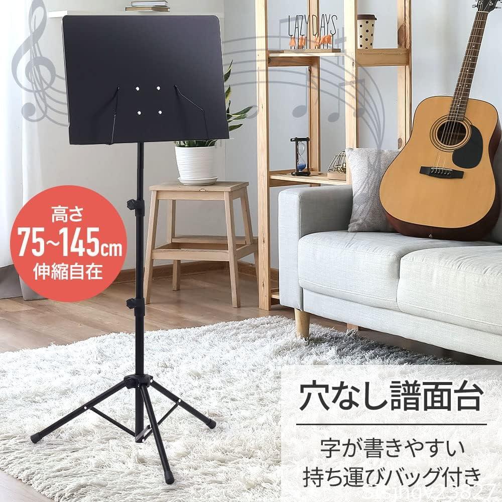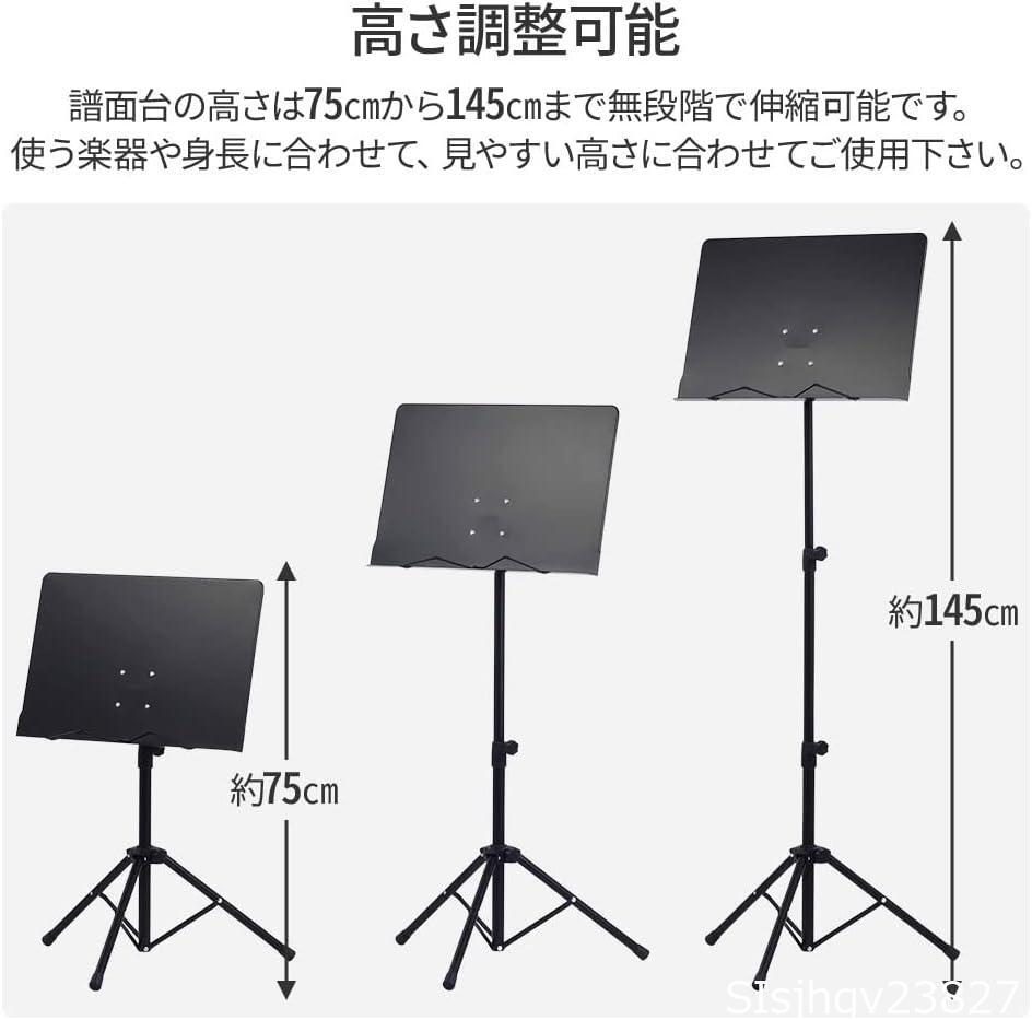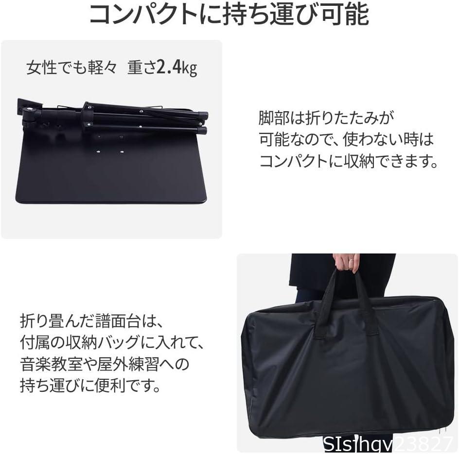 【商品詳細】サイズ:(約)譜面置き部/幅49×奥行(楽譜置き部分)5.5×高さ34cm、収納時/幅56×奥行7×高さ36cm 高さ調整:75~145cm、重量:(約)2.4kg、素材:スチール、付属品:収納バッグ