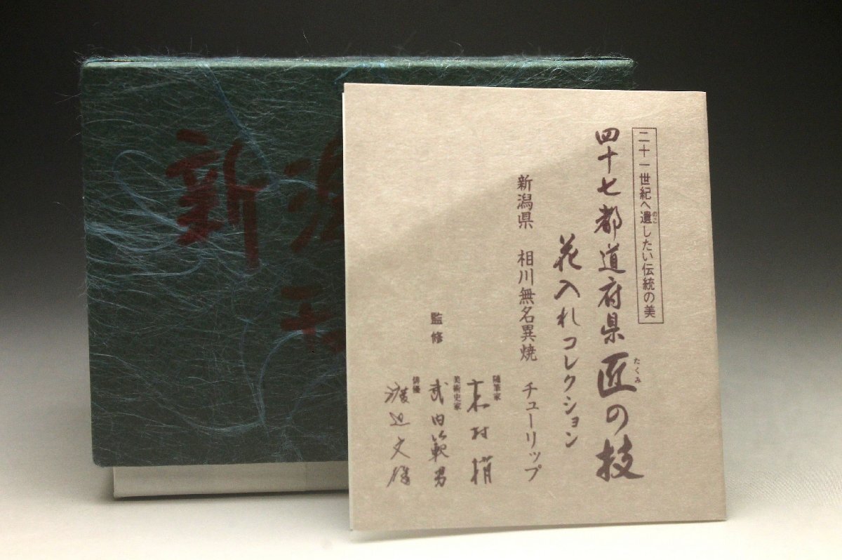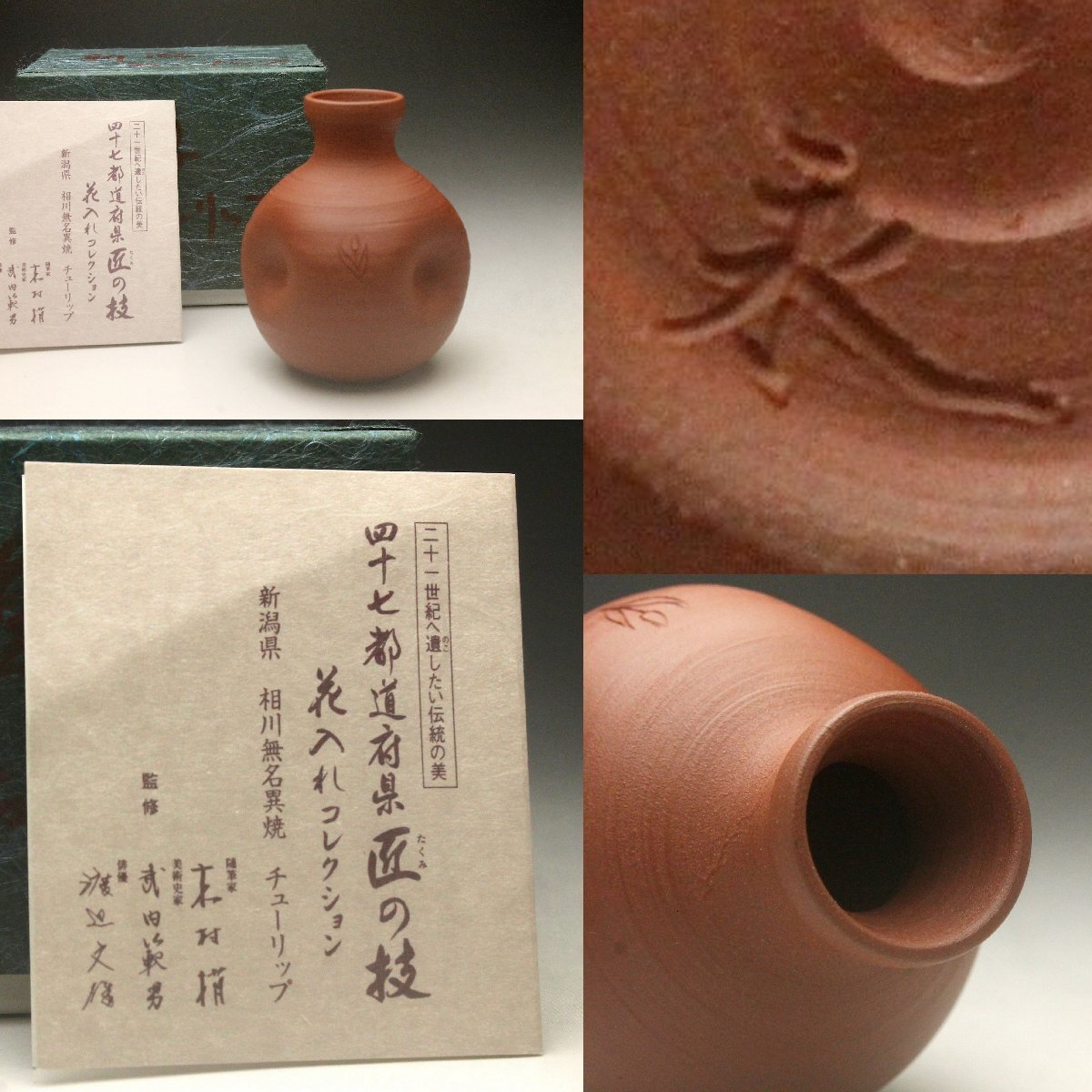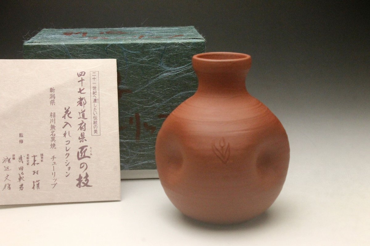 【余韻】 四十七都道府県匠の技 花入れコレクション 新潟 相川無名異焼 チューリップ★一輪挿 花器 化粧箱<同梱可>