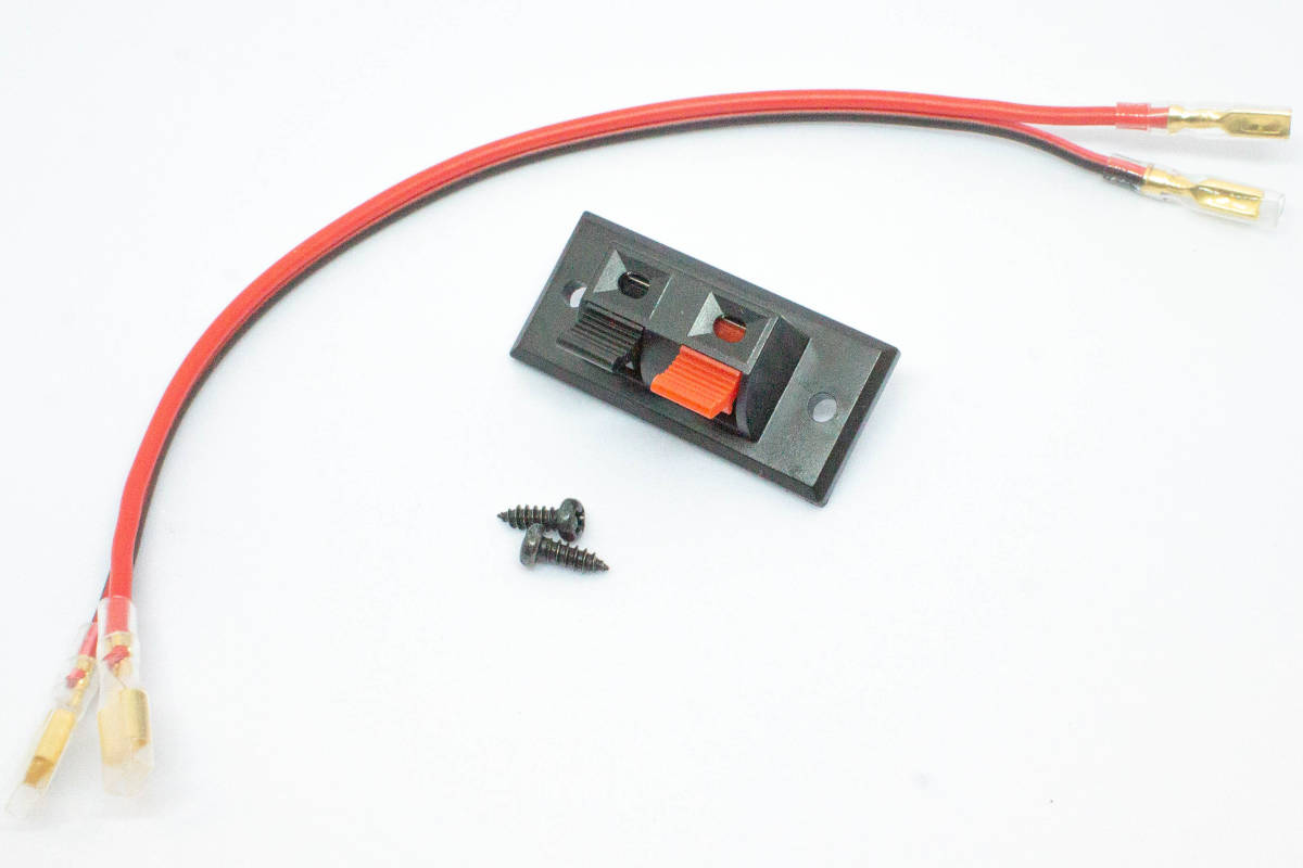 | 二極プッシュ式スピーカー端子 金メッキファストン端子付内部ケーブル&取付ネジ付 | ||||