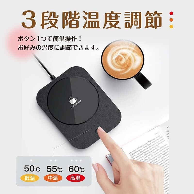 【3段階の温度設定】カップウォーマーには3段階の温度設定があり、飲み物の温度を50℃、55℃、60℃に維持することができます。仕事、勉強、ゲームに夢中で飲み物の最適温度を見逃すことを防ぐ。