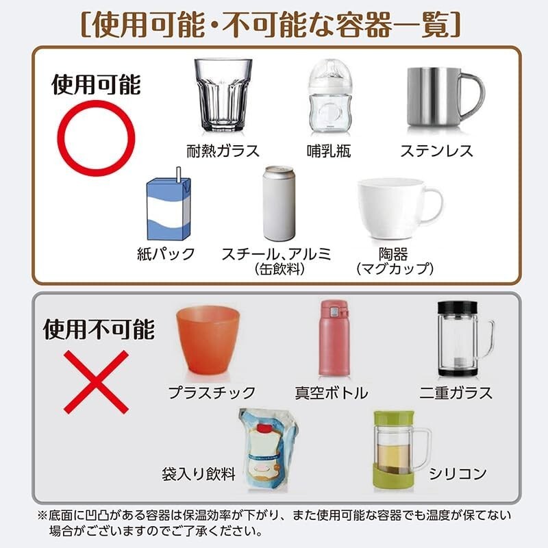 2.カップ材質によって保温効果は異なります。底が厚いカップや二重底のカップには適さないです。