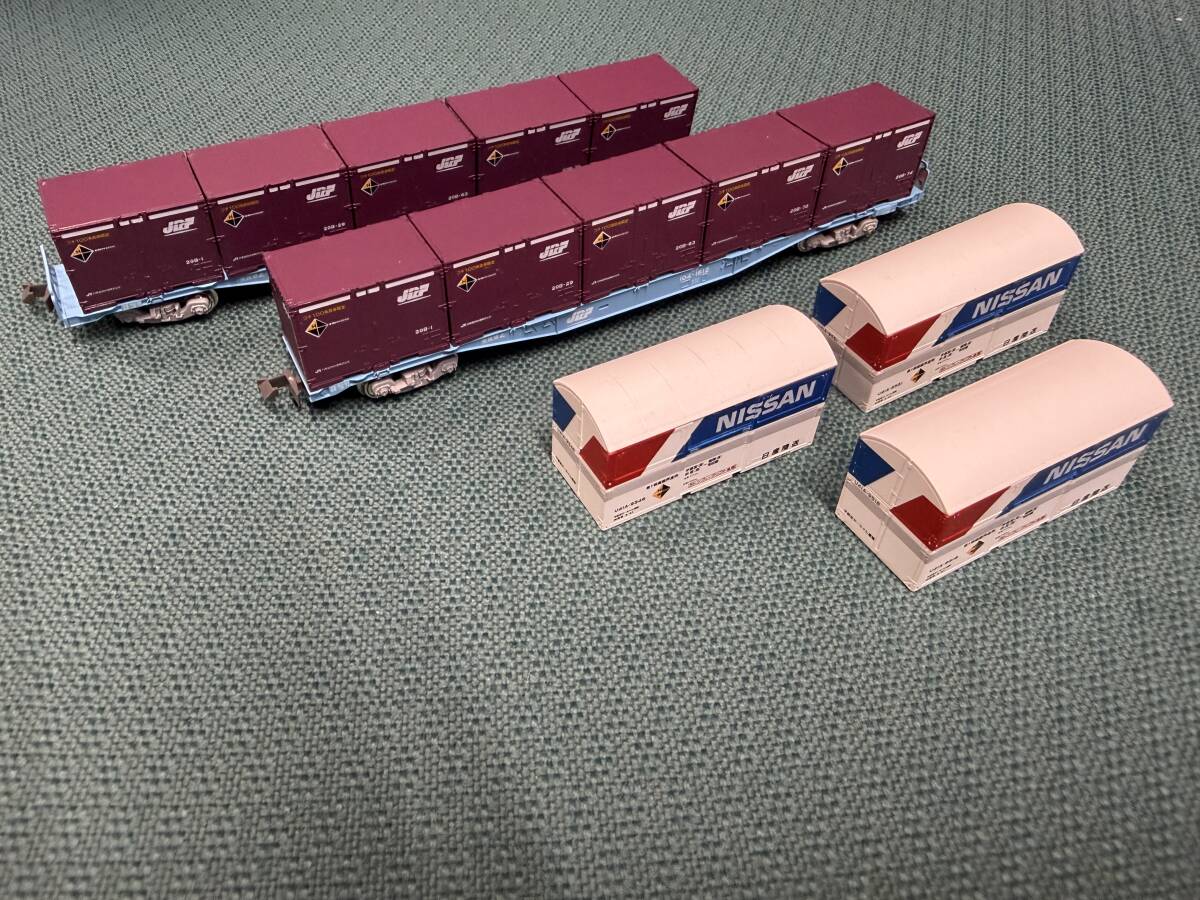 製品にもともと搭載されていたコンテナを外し、2両とも23-501 20B形コンテナに載せ替えています。