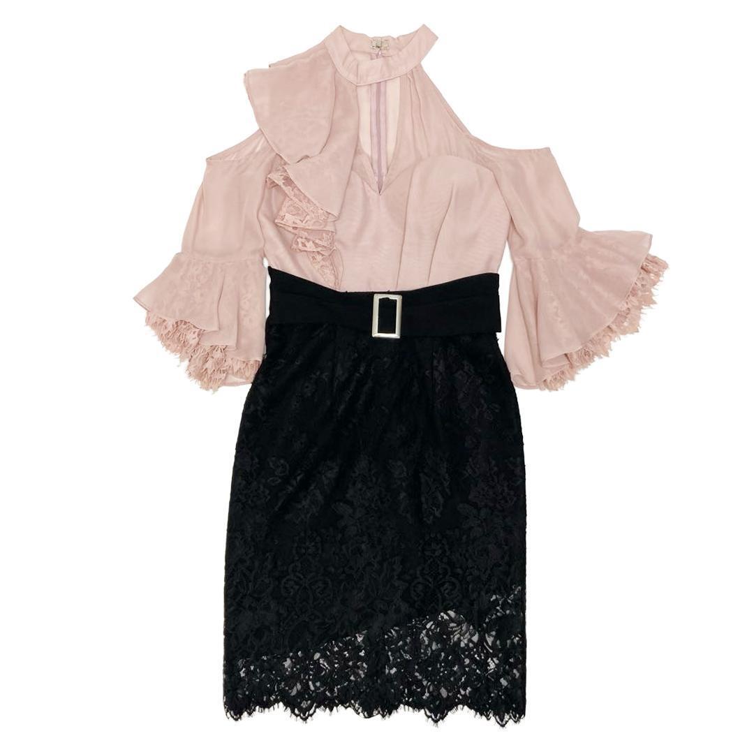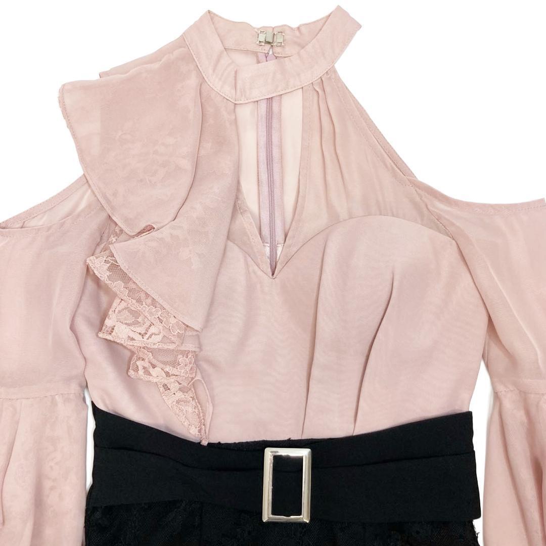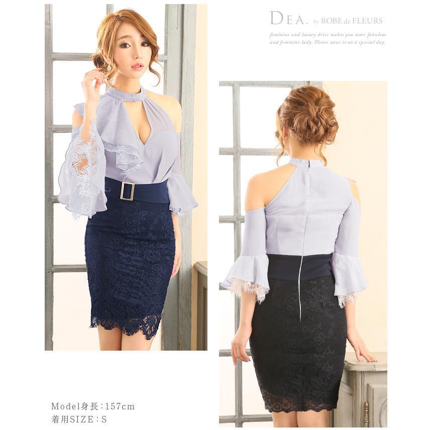 DEA. by ROBE de FLEURS ディア バイ ローブドフルール アシンメトリー×ホルターネックタイトドレス DE1883 ピンク×ブラック