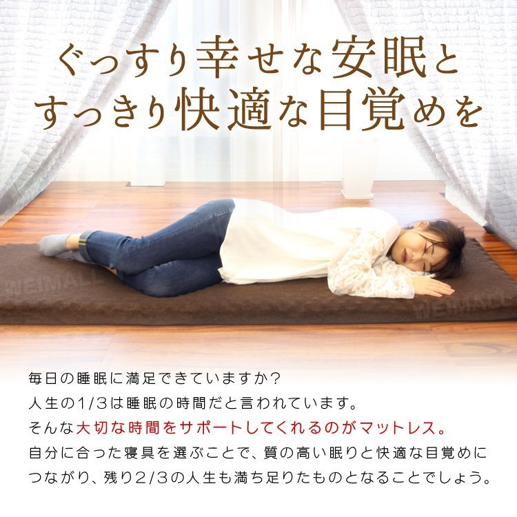 ちょっとした時のリラックスタイムに! 高反発プロファイル マルチマットレスです。 マルチマットレスは、高反発ウレタンで弾性が高く、適当な硬さで体を支えます。 高反発ウレタンには、プロファイルを採用しているので各凹凸が体を点で支えることで負担が一点に集中しないのが特徴です。 通気性にも優れ、熱がこもりにくく、湿気を逃す効果もあります。 お昼寝時や転がって読書や仮眠したい時など、リラックスタイムにおすすめ。 車中泊やキャンプにも最適です! クルクルと丸めることができ、収納持ち運びにも便利です。 【商品仕様】 内容:本体 ×1 カラー:ブラウン サイズ:(約)60cm×180cm×6cm 重量:(約)1.5kg 素材:高反発ウレタン、ポリエステル100% 【注意事項】 ・圧縮梱包されたままの状態で長期間保管した場合、マットレスが復元できなくなってしまいます。商品到着後、すぐ圧縮から開放をして頂くようにお願いいたします。 ・マットレスは約1~2日で復元します。気温や温度により3~14日かかる場合もあります。 ・製品の臭いが気になりましたら、風通しの良いところで脱臭してください。この臭いは素材のウレタンによるもので無害です。臭いに敏感な方は十分ご検討の上、ご購入をお願いいたします。 ・マットの硬さは温度によって変わってきます。また、硬さの感じ方には個人差があります。 ・カバーは取り外して洗濯ができますが、マットレス本体は洗濯しないでください。 ・商品は、モニターによって色合いが異なって見える場合があります。 ・仕様・デザインは改良のため予告なく変更することがあります。 |