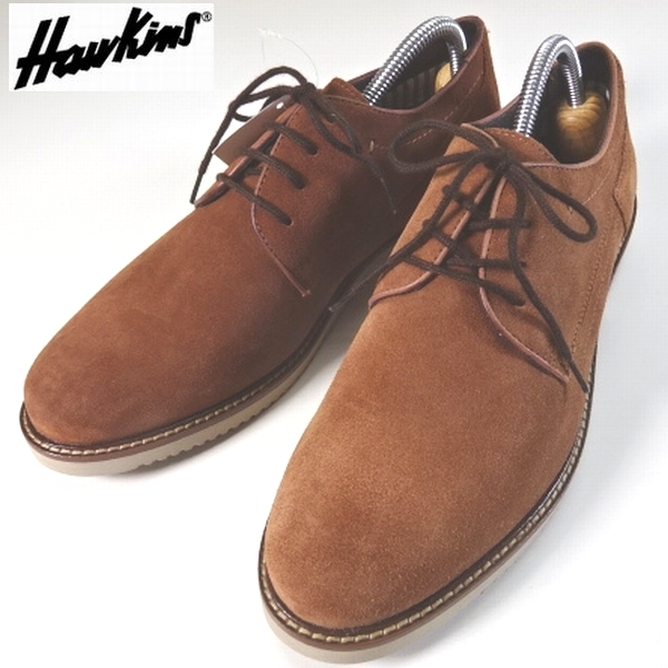 新品訳 Hawkins ホーキンス 本革 レザー ビジネスカジュアルシューズ 靴 26.5-27cm 42 茶 HAYES PLAIN プレーントゥ メンズ 男性 紳士