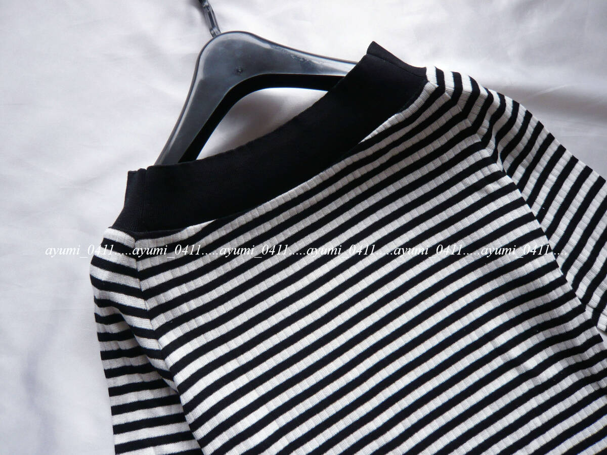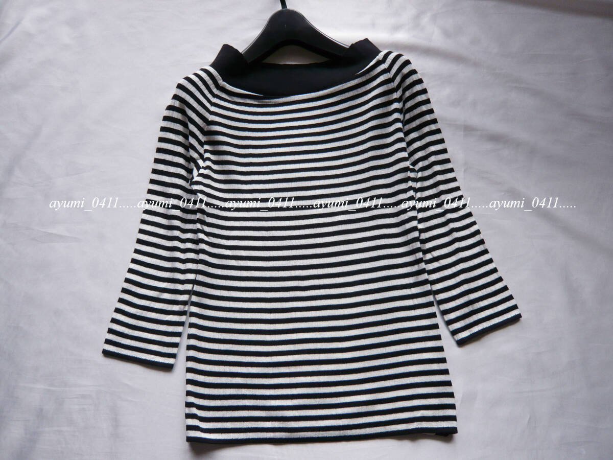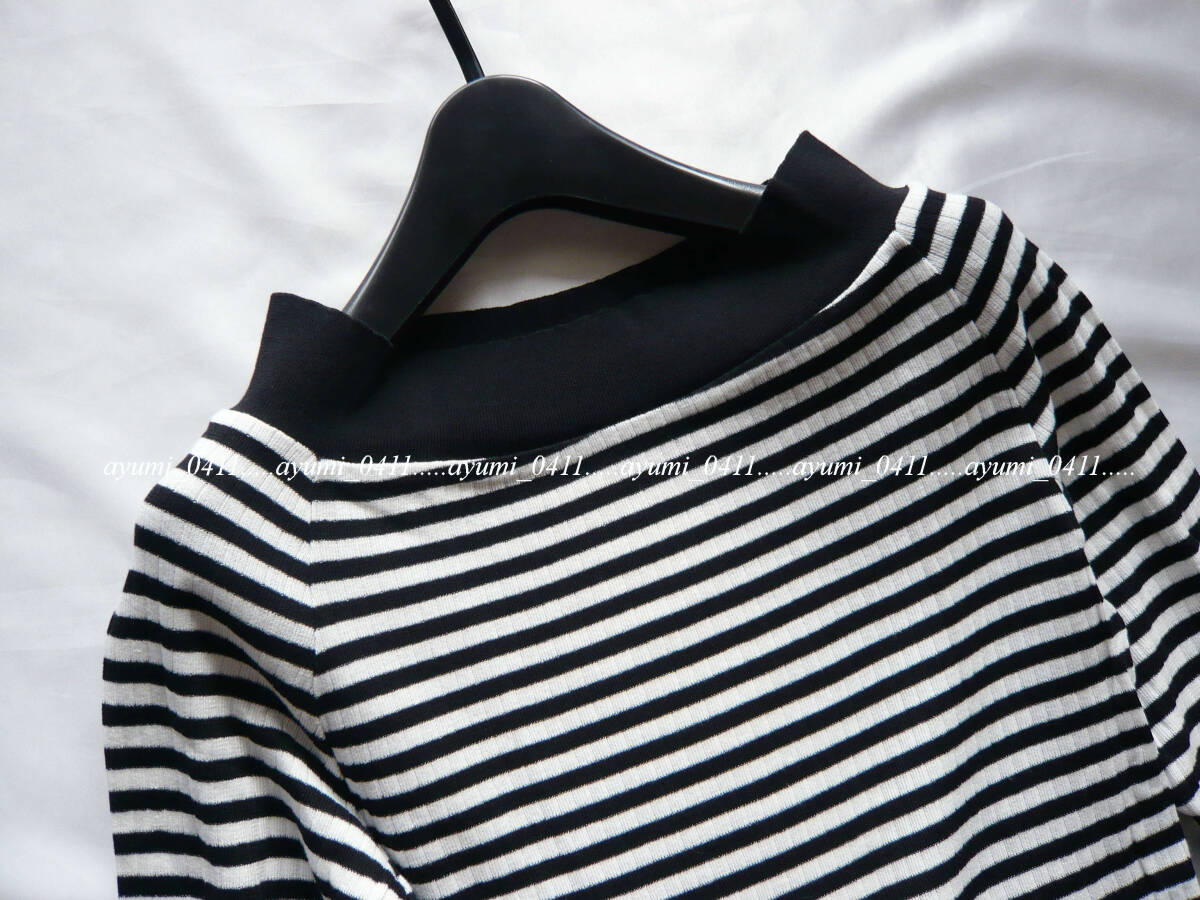 ★未使用★Spick & Span スピックアンドスパン/黒×白 ボーダー・針ヌキ オフショル プルオーバーカットソー/手洗い◎/フリーサイズ