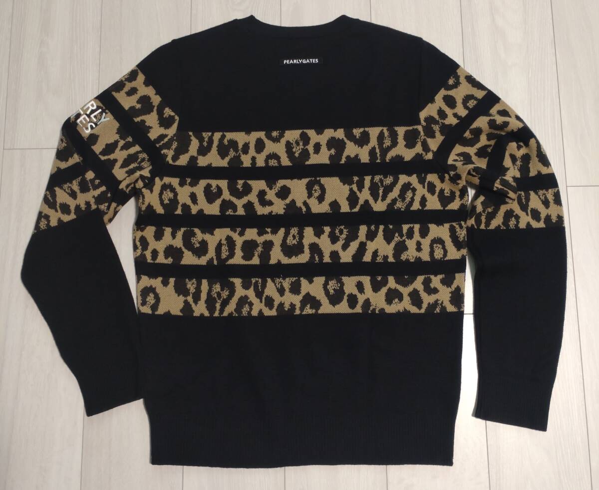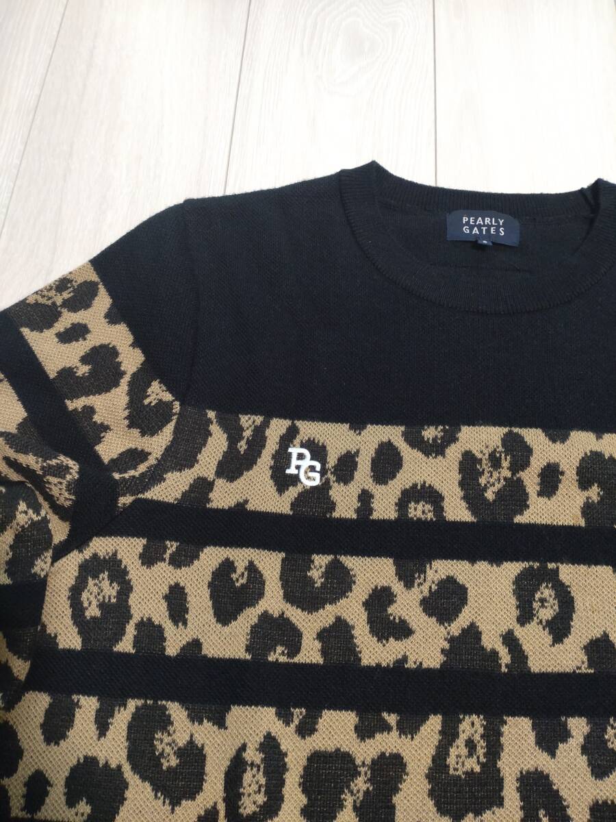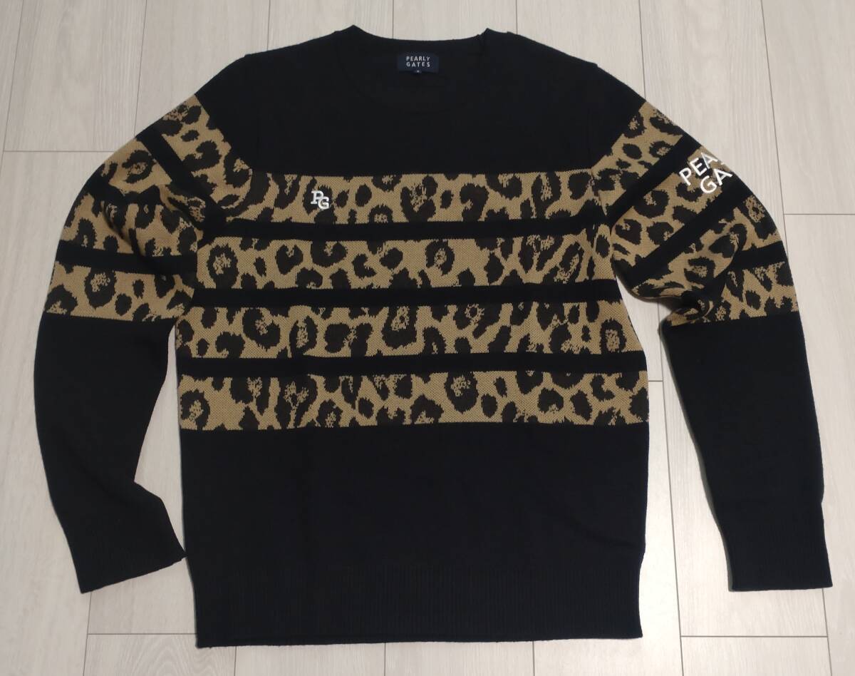 PEARLY GATES パーリーゲイツ ウール混 ニットセーター レパード柄 ボーダー ブラック系 サイズ5 超稀少非売品