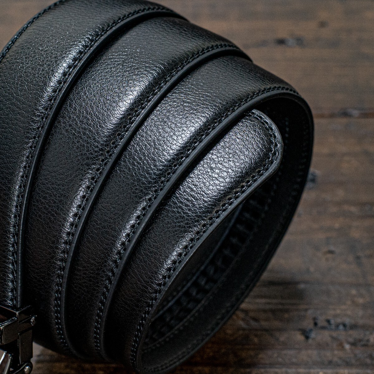 無段階調整【本革】~123cm 穴無し ビジネス フォーマル メンズ ベルト フリーサイズ 新品 未使用 送料無料 1円 黒 ブラック 田中革具