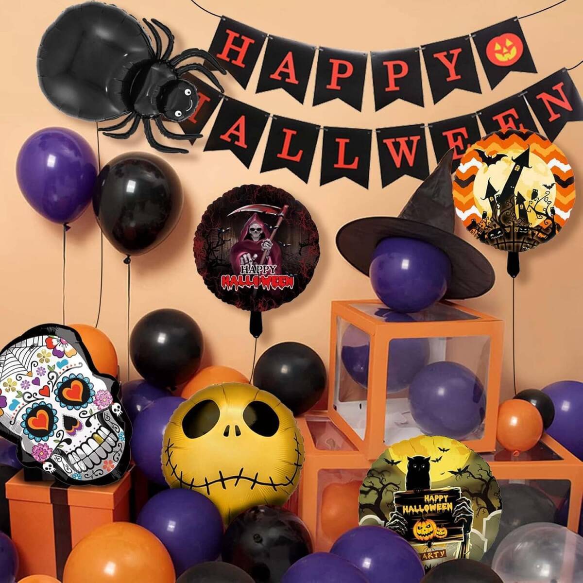 20個セット ハロウィン 飾り バルーン 風船 大きいサイズ 装飾 アルミバルーン 丸形 ガーランド プルフラグ付き 壁飾り 写真道具