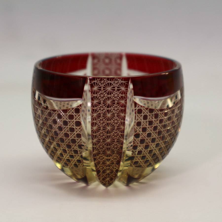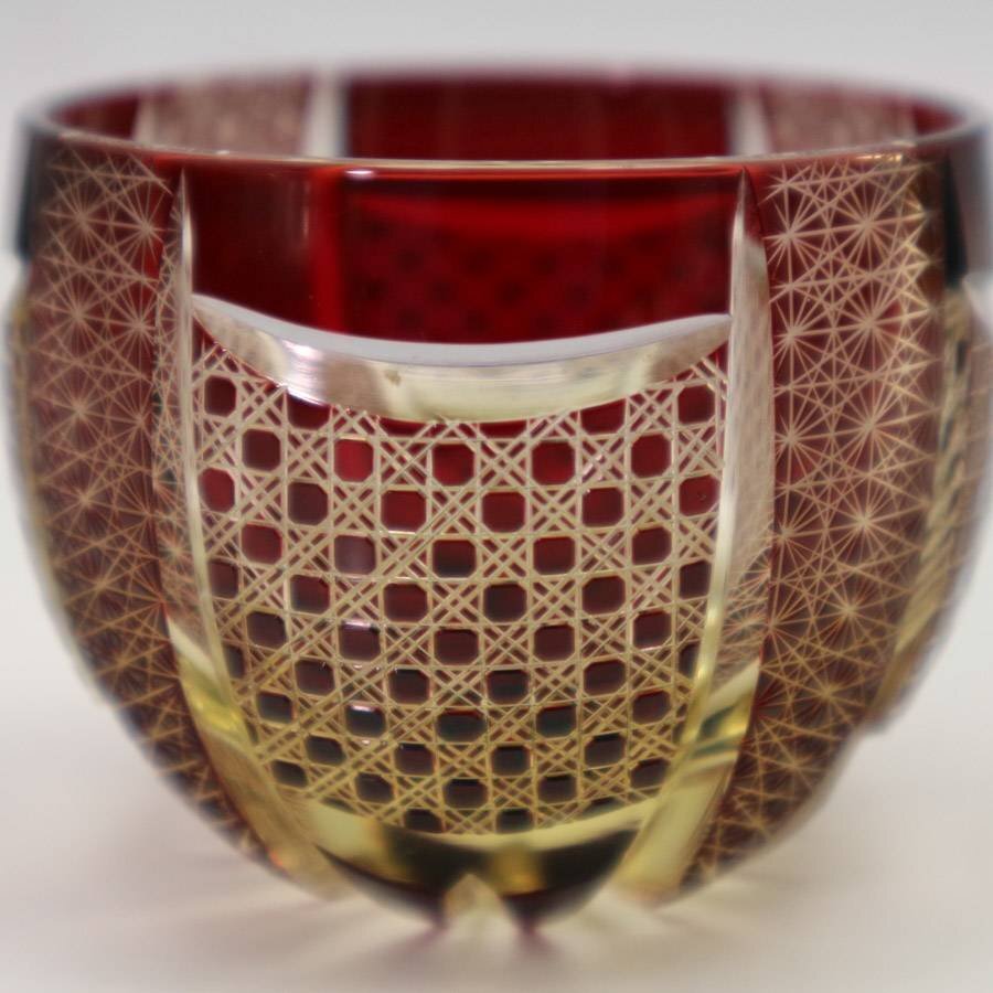 美品 華硝プレミアム マスターズコレクション ぐい呑み 紅色◆277f15
