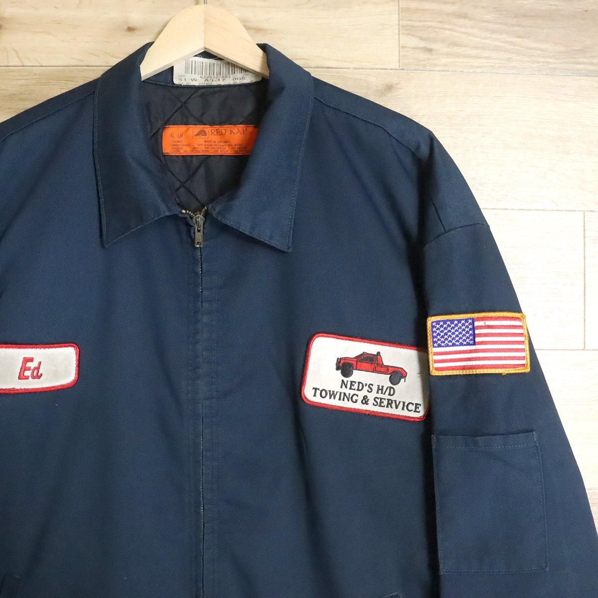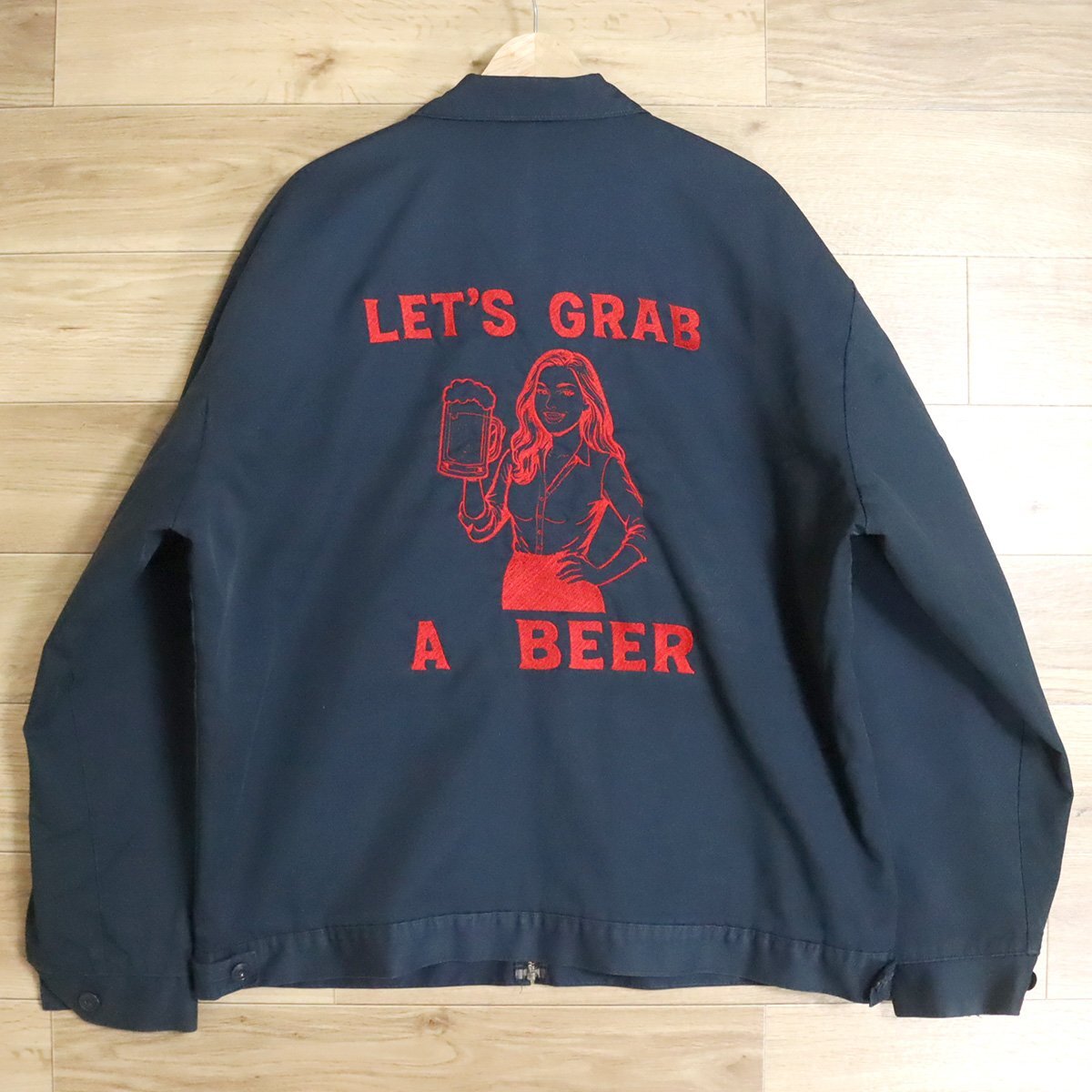 J4T/D10.9-2 アメリカ古着 RED KAP レッドキャップ ワークジャケット XL メンズ バック刺繍 ビール 女性柄 LET'S GRAB BEER