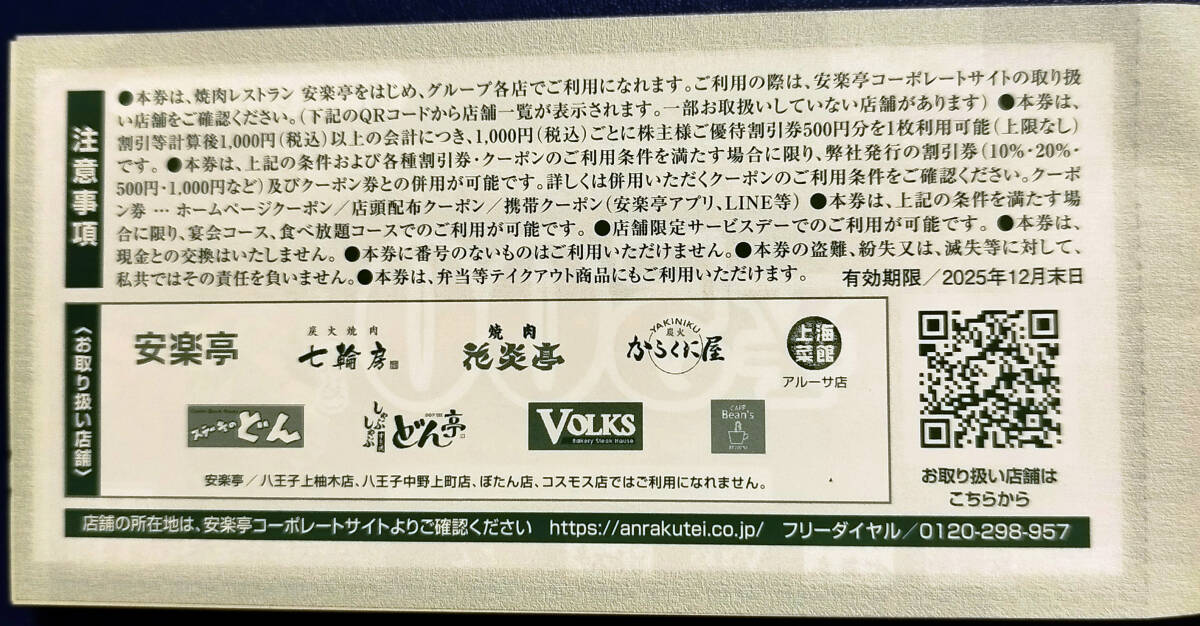 【安楽亭株主優待券】13000円分(500円割引券26枚) 2025年12月末迄 送料込 | |