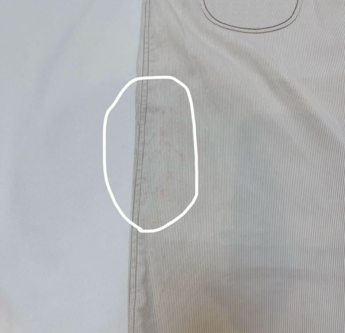 目立つ大きなダメージはありませんが、サイドにうっすらインクのようなオレンジの汚れがございます(写真参照)