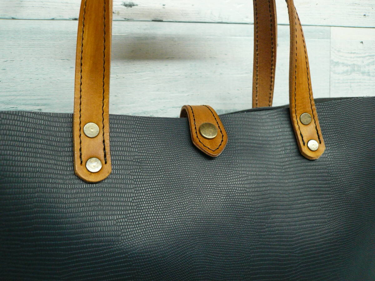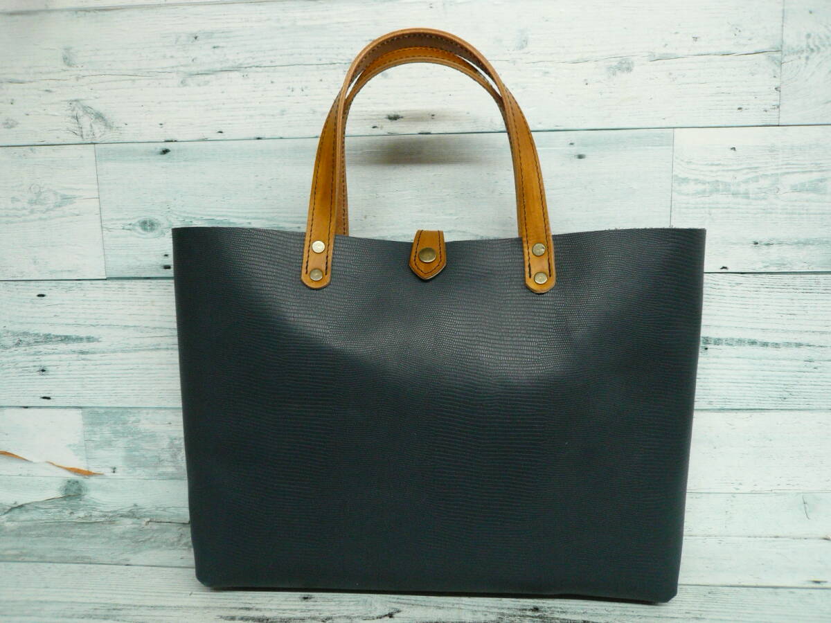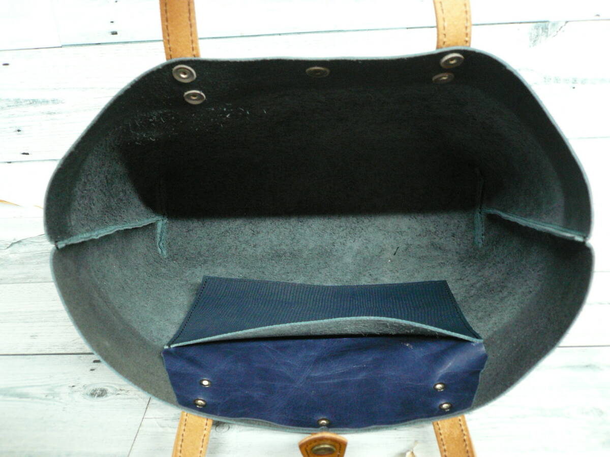 贅沢厚め硬めシュリンクネイビーブルー系 トートバッグ ハンドバッグ牛革 持ち手留め部分ヌメ革 ハンドメイド作家手作り日本製鞄 478