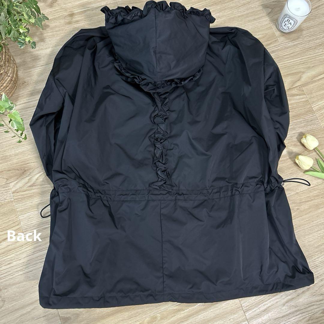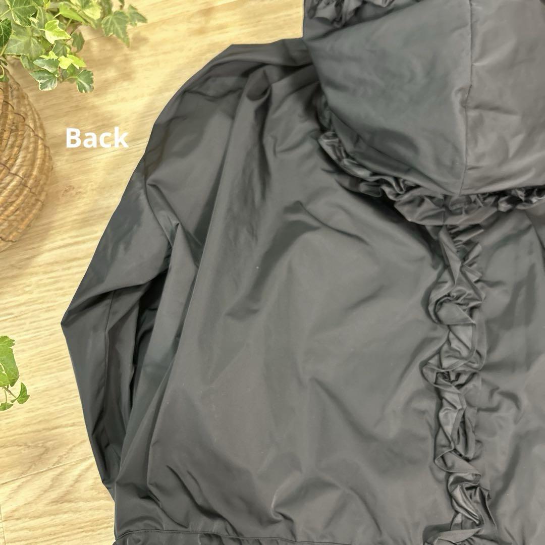 布でくるまれたフリルチェアをイメージし、フリルをあしらったオーバーサイズのブルゾン。